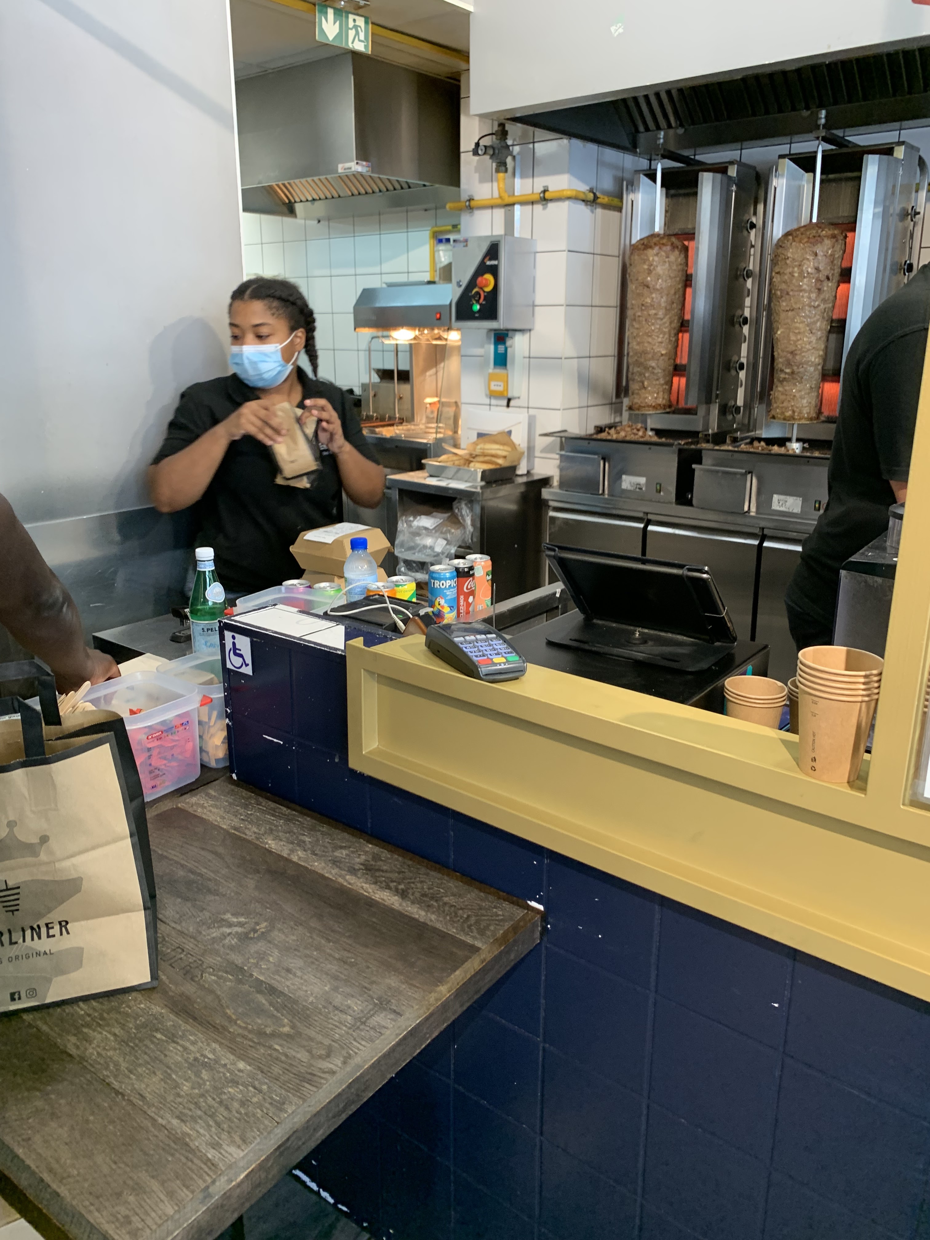 Les kebabs BERLINER sont certes tres bons,mais l'expérience vecue hier soir m'a dissuader d'y retourner . nous nous y sommes rendu en debut de soirée en famille avec des amis ,le restaurant etait vide et un coursier attendait sa livraison. Sur les 2 personnes qui travaillaient a l'accueil des clients, pas un bonjour,ni un sourire ..ni meme d'invitation a prendre notre commande ! Apres avoir attendu,nous nous sommes decider a passer notre commande sur une tablette tactile situé a proximités de la porte d'entrée,au final,nous sommes partis car l'attitude désabusée et nonchalante du personnel en place m'a agacé . C'est honteux de recevoir des clients comme ca! Un bonjour ou un sourire n'ont jamais blessé personne! Il s'agit d'un restaurant et non pas d'un guichet de retrait de sandwich!