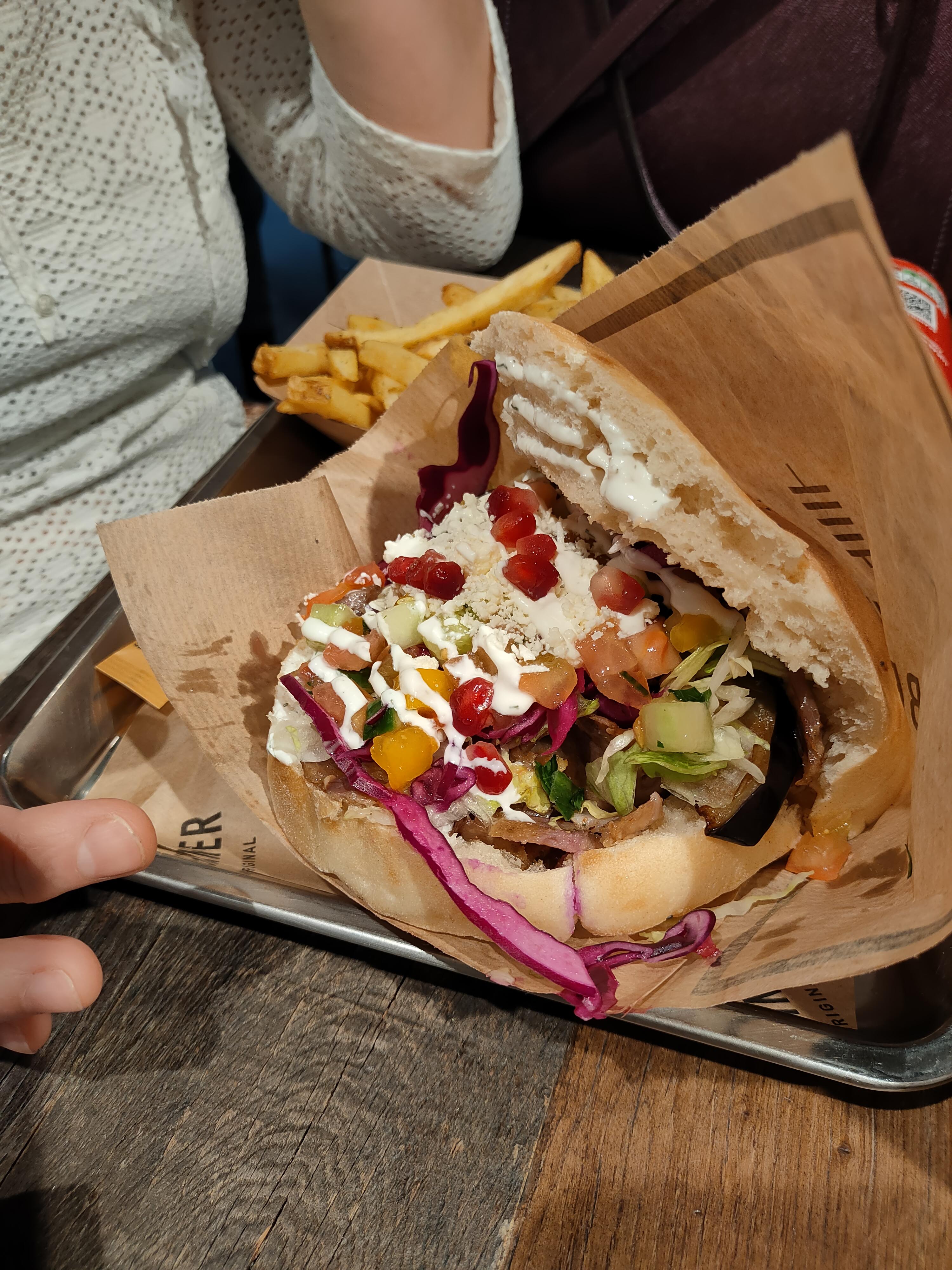 Un kebab plus healthy, avec plus de légumes et une viande un peu plus goûtue. Le prix est tout de même plus élevé qu'un kebab classique (≈13€). Le personnel est très agréable et de bon conseil. En somme, une bonne adresse pouvant remplacer votre kebab habituel si vous cherchez à manger mieux. A kebab healthier with more vegetables and a better meat (beef). The price is higher than a classic kebab. The staff is very kindly with good advices.