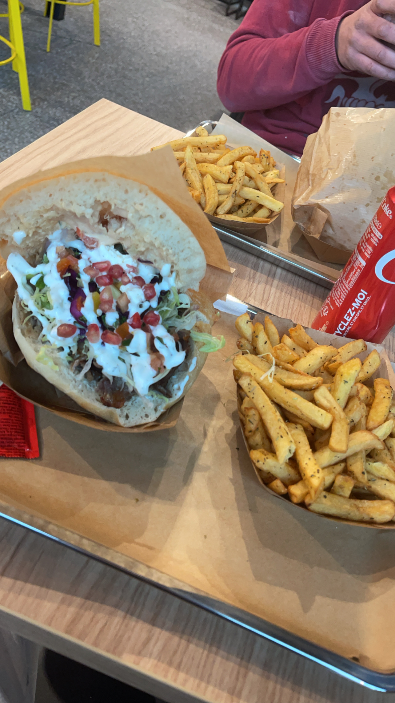Frites beaucoup trop salé, kébab cher, vraiment pas terrible niveau goût