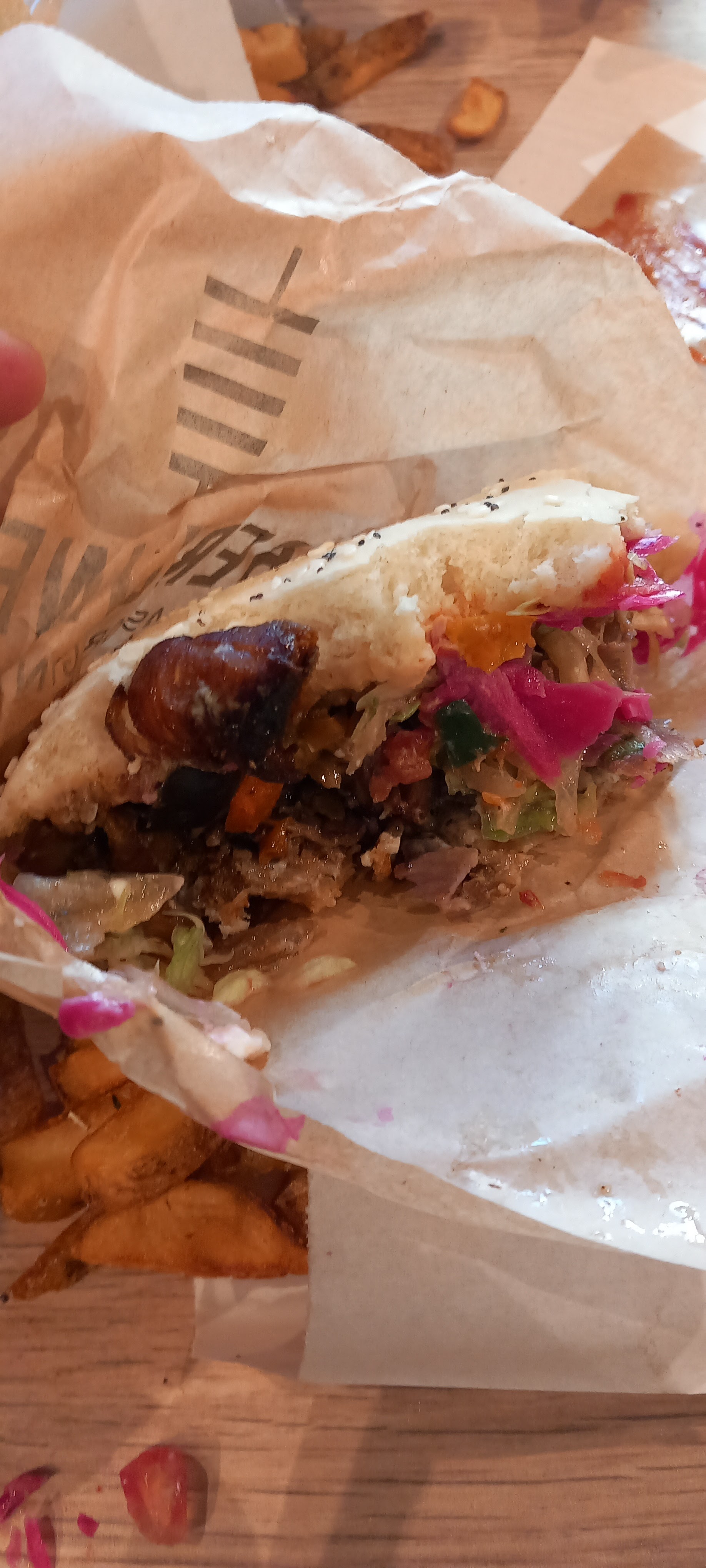 Super bon. Le sandwich pita au top ! Pas gras car sans frites. Frais avec la garniture, excellent ! Le seul bémol: les épices sur les frites trop présentes. Mais c’est un petit bémol. Joli concept ! Bravo