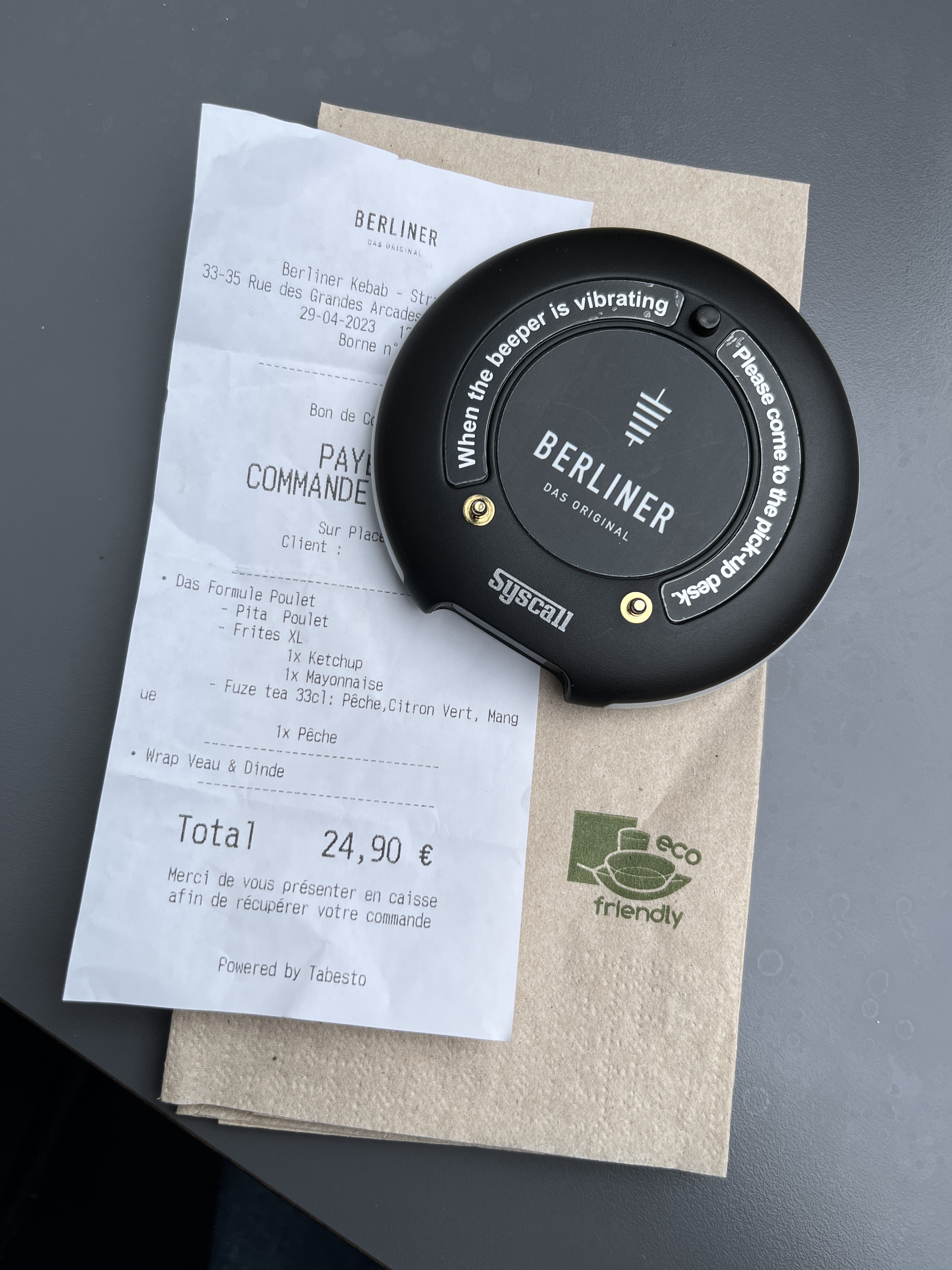 Rare sont mes avis acerbes mais faut pas abuser non plus. C’est pas parce qu’une enseigne utilise des bornes et des beepers qu’elle est efficace. De plus, impossible d’accepter de payer 9,95€ un simple döner… quelque soit le nom donné pour se distinguer. —— Aparté Faut vraiment que les gens responsabilisent leur consommation et arrêtent de payer une image et du marketing!