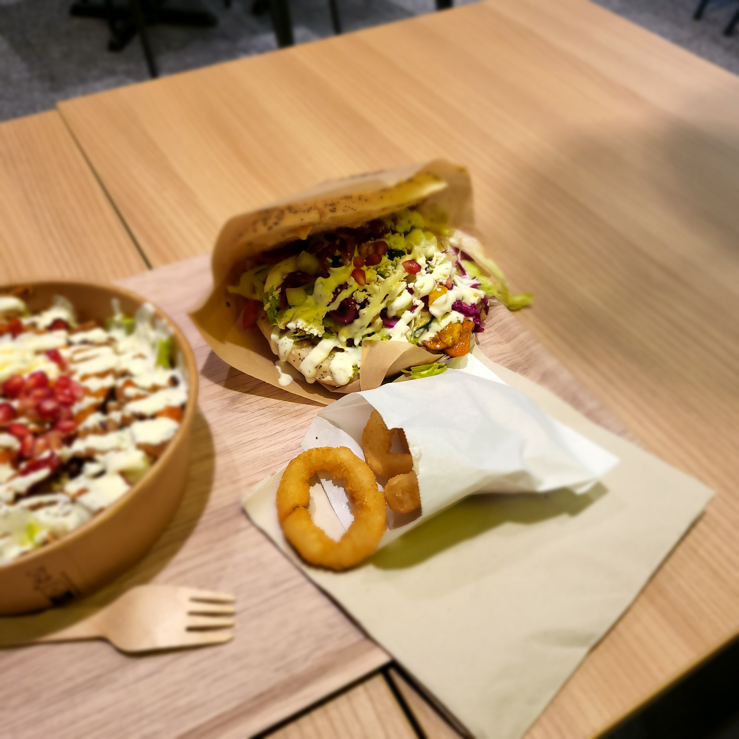 Découverte de ce nouveau restaurant qui intègre le centre commercial et plutôt satisfait ! Je trouve ce type de sandwich grec plutôt original avec une garniture fournie et variées. Des frites surgelés certes, mais très bonne avec des herbes provençale qui apportent une touche qui fait toute la différence. Les prix restent acceptable même si une baisse de 1€50 en général ne serait pas désagréable pour la clientèle. Je reviendrai de temps en temps 😊