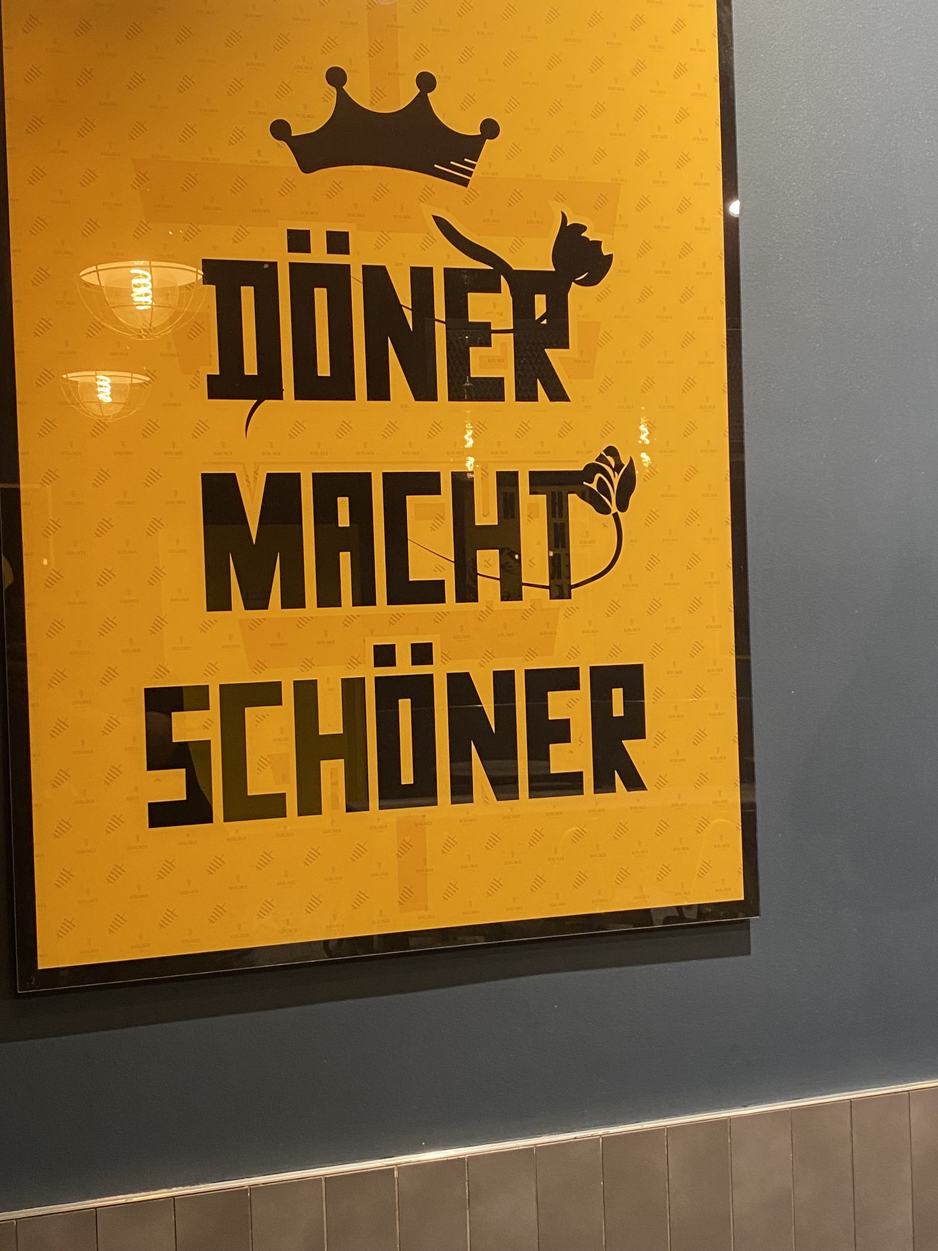 Le Berliner Kebab est bon mais malheureusement un peu cher : 11€90 le menu composé du sandwitch, d'une portion de frites ou petite salade et d'une boisson. Le lieu est bruyant et l'accueil un peu froid. La viande est Hallal (confirmé par un certificat). La déco industrielle est appréciable.
