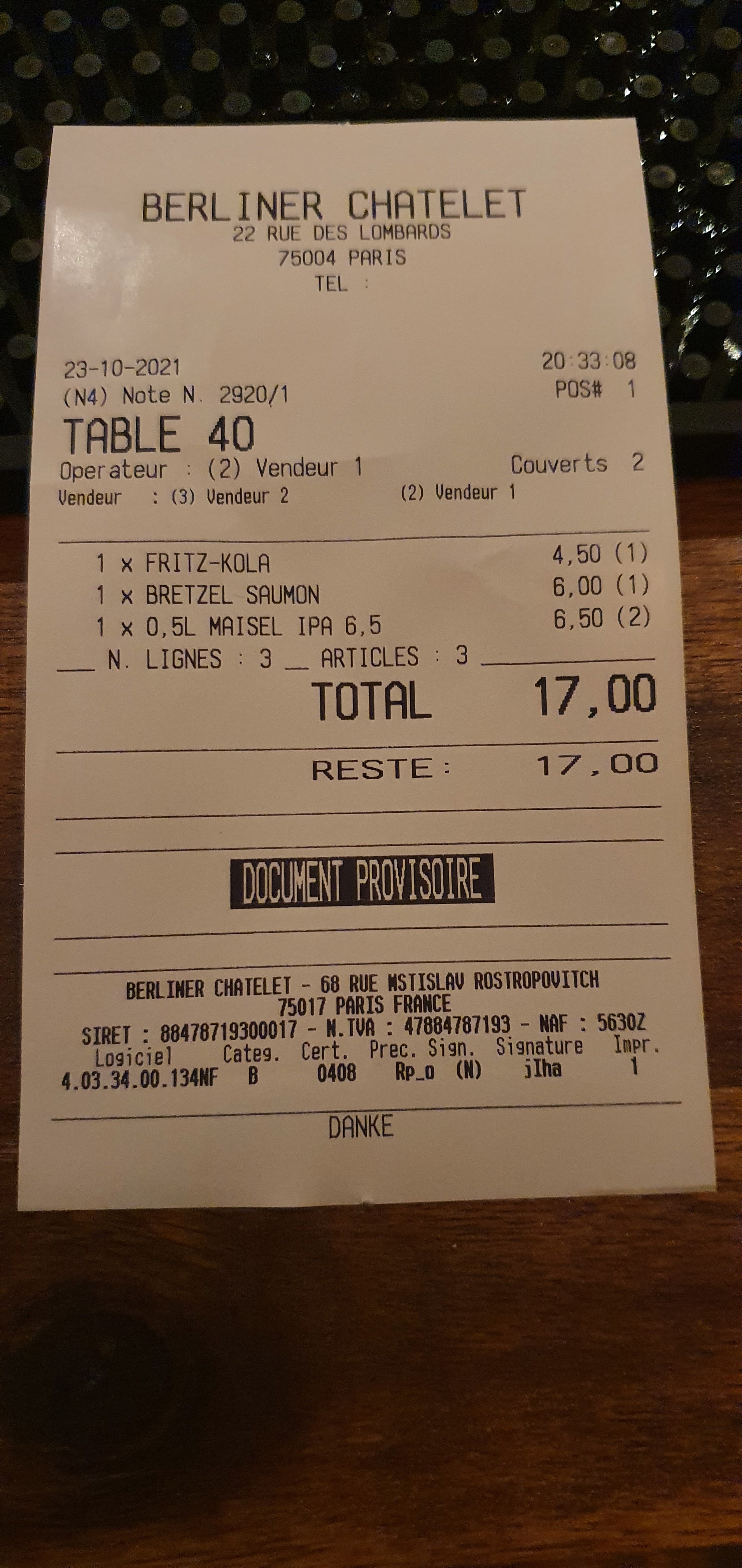 Bar sympa pour partager un apéro à la mode berlinoise : bière et curry wurst. Service impeccable et prix correct compte tenu de l'emplacement au coeur du quartier du chatelet. J'y retournerai !