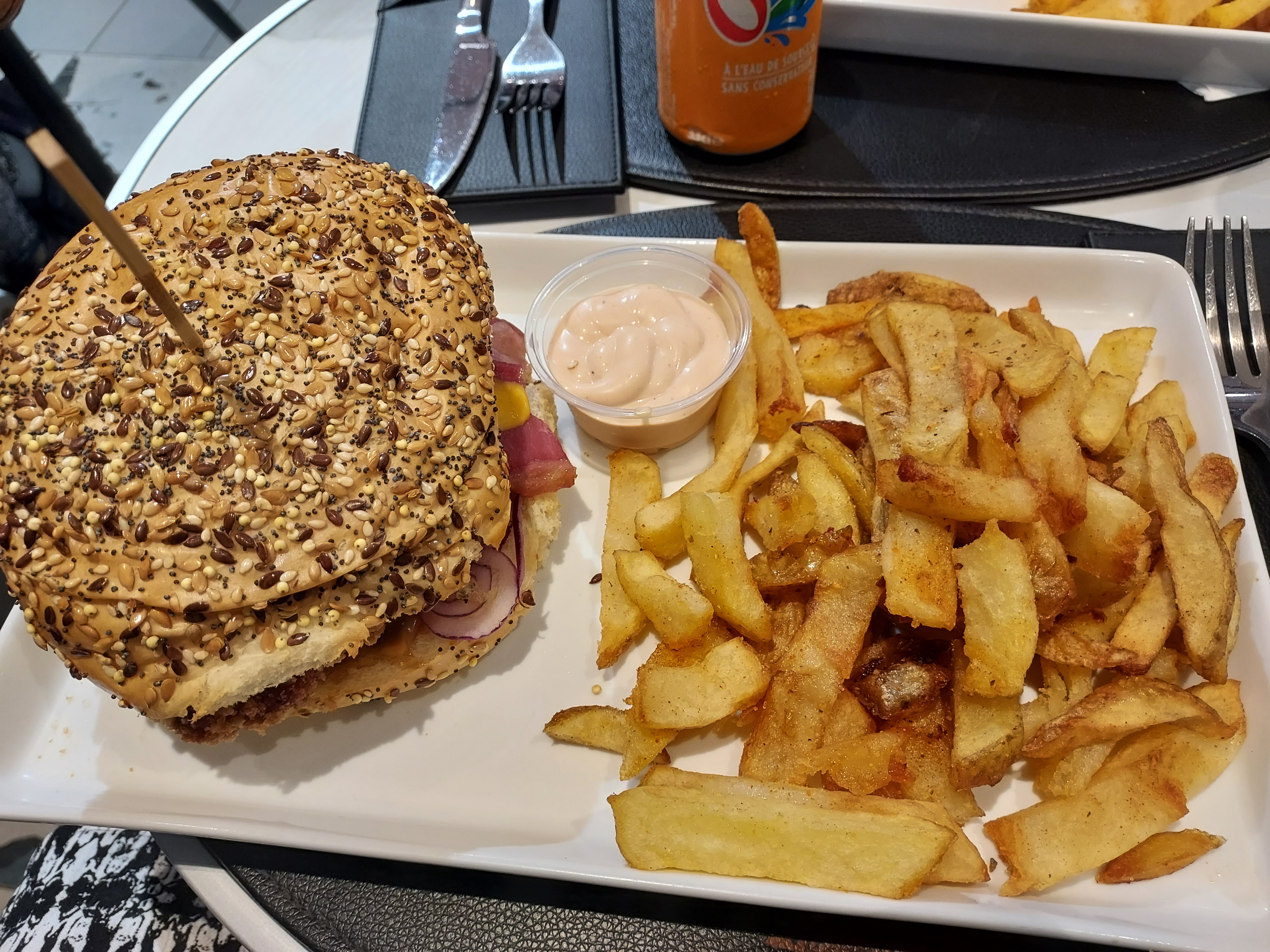 Malgré l'emplacement (la gare), endroit sympathique, accueil avec le sourire, burger très bon et assiette copieuse. Pour moi seul bémol, frites trop grasses