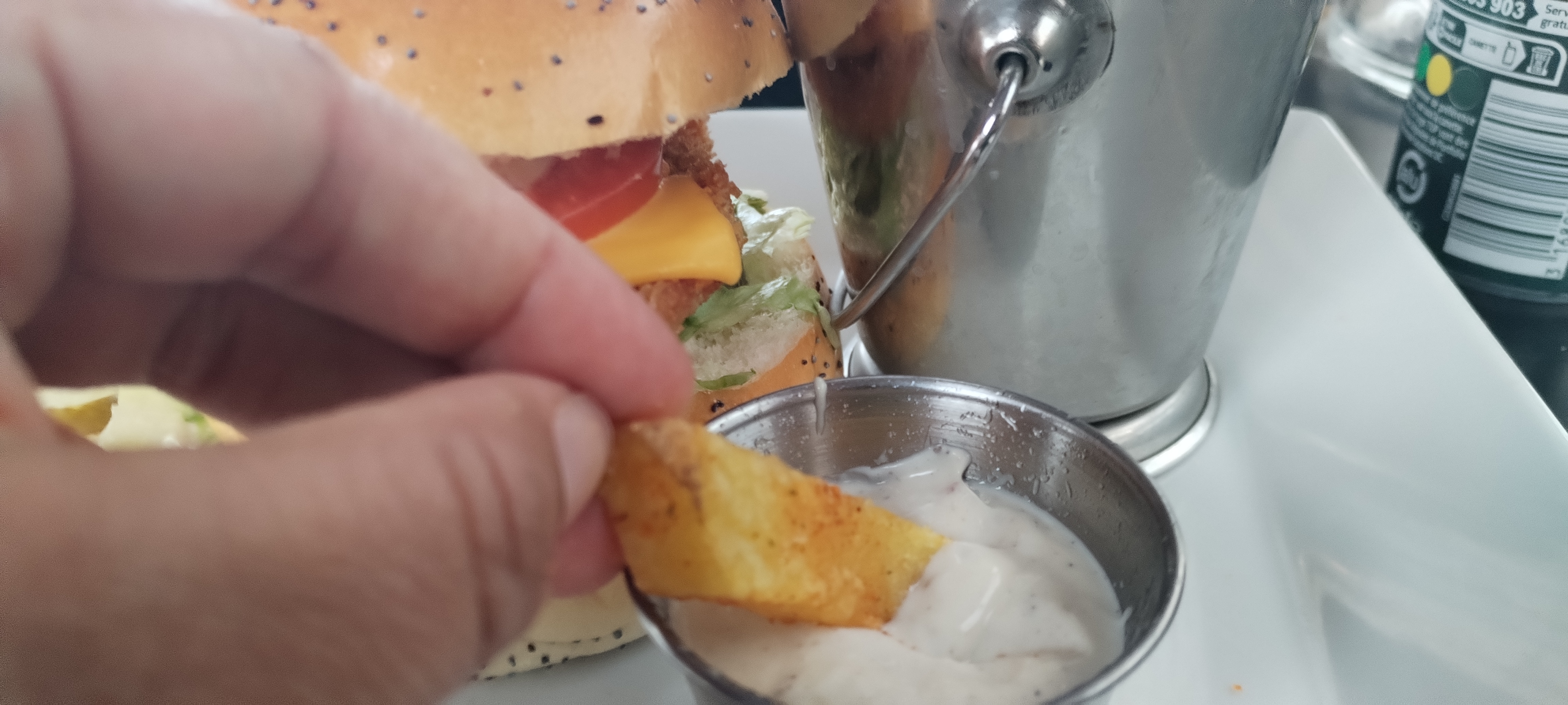 Je recommande à 100%, accueil et service agréable, attentionné et impeccable! Concernant les plats, halal ,très belle surprise, on sent qu'il y a un chef qui assure en cuisine. Le burger bacon est excellent, je crois que c'est meilleur que j'ai mangé, frites parfait et la sauce, un delice. J'ai pioché dans les assiettes, alors les pâtes au saumon trop bon, au poulet aussi et plats copieux. Bref, très belle expérience culinaire, merci , équipe gagnante!