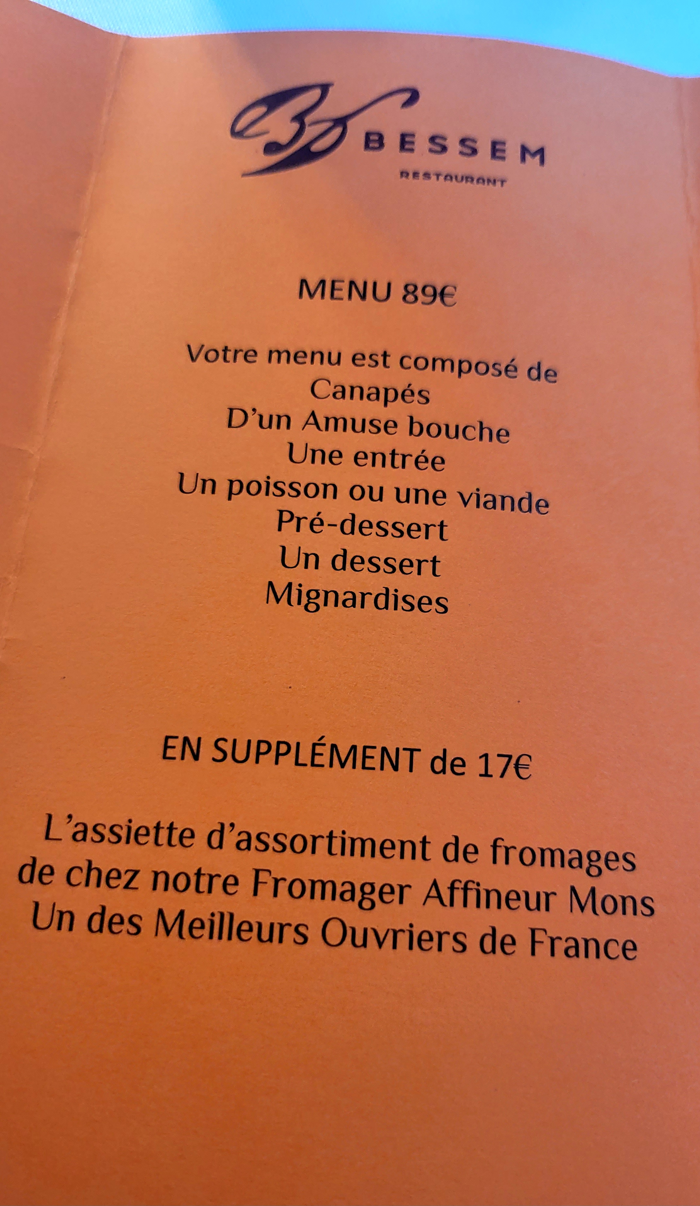Tout simplement parfait ! Nous avons choisi ce restaurant par hasard , eh bien le hasard a bien fait les choses ! Nous avons passé une merveilleuse soirée au restaurant Bessem . Accueil chaleureux avec un personnel d’un grand professionnalisme et aux petits soins tout au long du diner . Nous avons choisi le menu surprise à 72 € et nous avons été enchantés tant par l’originalité des mets que par la finesse de la cuisine . Nous avons fait confiance pour le choix de vins et nous n’avons pas été déçus : la jeune fille nous a bluffé par sa connaissance des vins et sa pertinence des choix . Nous avons déjà testé pas mal de restaurants étoilés et Le Bessem n’a rien à leur envier ! La petit note touchante et agréable : le chef Bessem vient vous saluer et vous remercier avant votre départ avec une petite attention sucrée . Talent et humilité …c’est assez rare pour être souligné . Merci encore pour cette merveilleuse soirée . Ne changez rien !