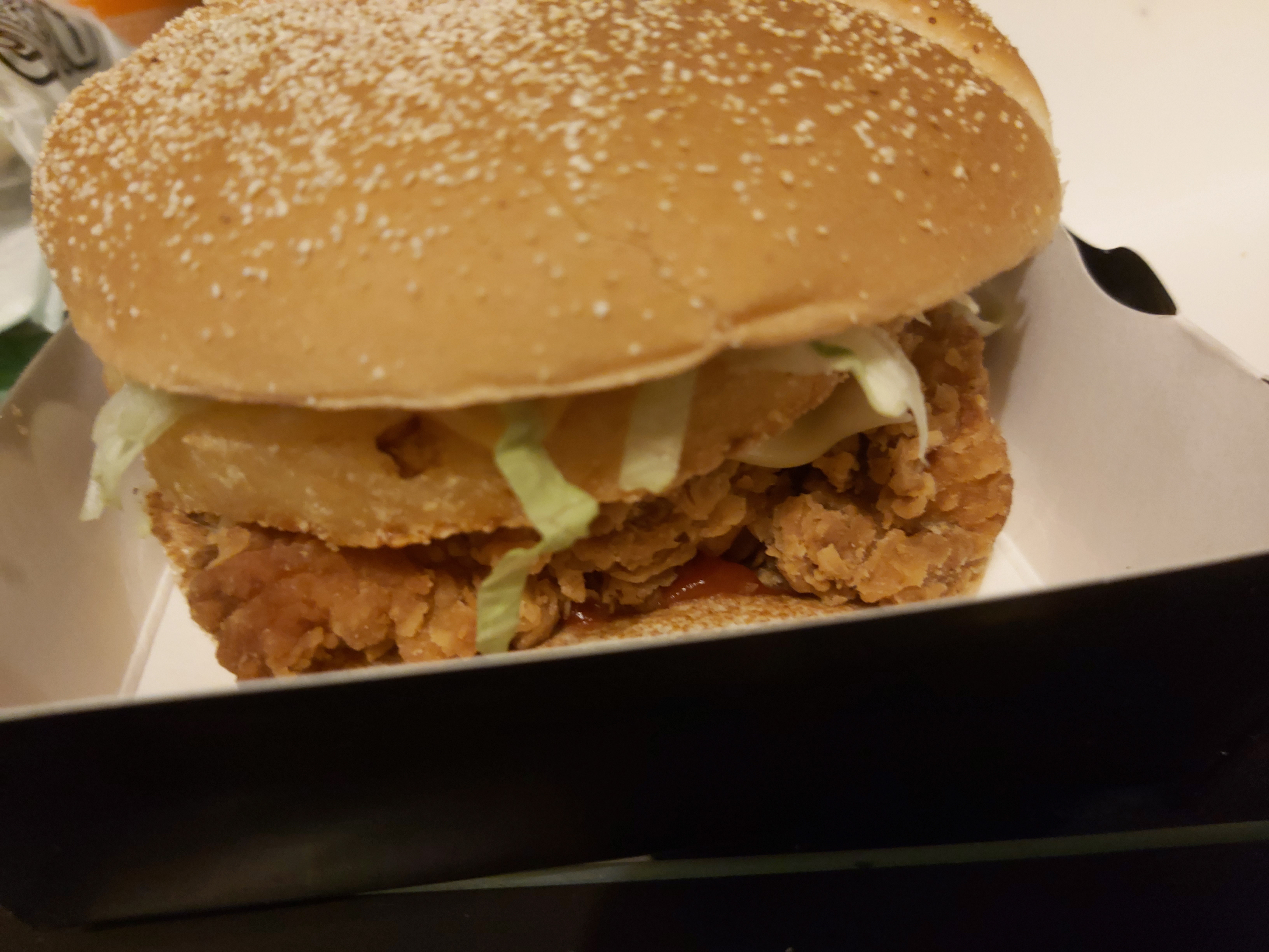 Horrible à été ma surprise de découvrir la boîte usagée de ce Burger Je me suis dis bon quelque chose tombé du ciel peut expliquer ça mais nonnnnn la suite fut pire avec un moustique mort en guise de digestif !!!!! Je porte plainte.