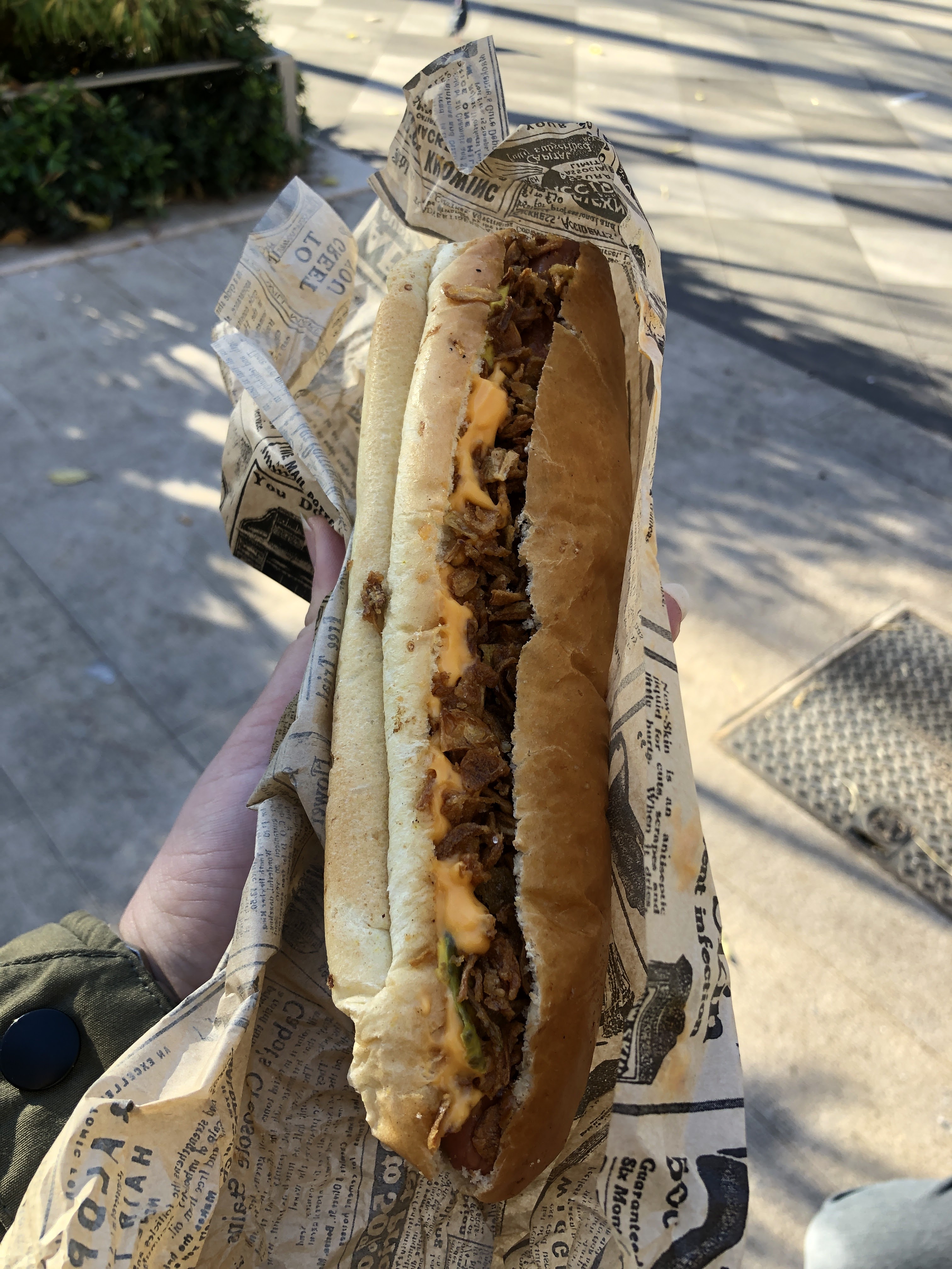 Aujourd'hui, nous étions ici pour la première fois, nous avons commandé un hot dog et un double burger dans un menu avec frites, cheddar fondu, oignon frit et soda. Nous avons attendu environ 10 minutes pour la commande. Le hot-dog était assez gros et savoureux. La boîte de frites était pleine à ras bord, avec beaucoup de cheddar fondu et d'oignons frits. Le double burger était incroyablement bon, la viande fondait dans la bouche. Les ingrédients étaient frais et bien équilibrés. Le restaurant est situé à proximité du centre ville, vous pouvez manger sur place, à emporter ou commander en livraison. Le service est très sympathique et l'endroit est très propre. Les prix ne sont certainement pas bas, mais la qualité de la nourriture est superbe ! Nous reviendrons certainement ici.