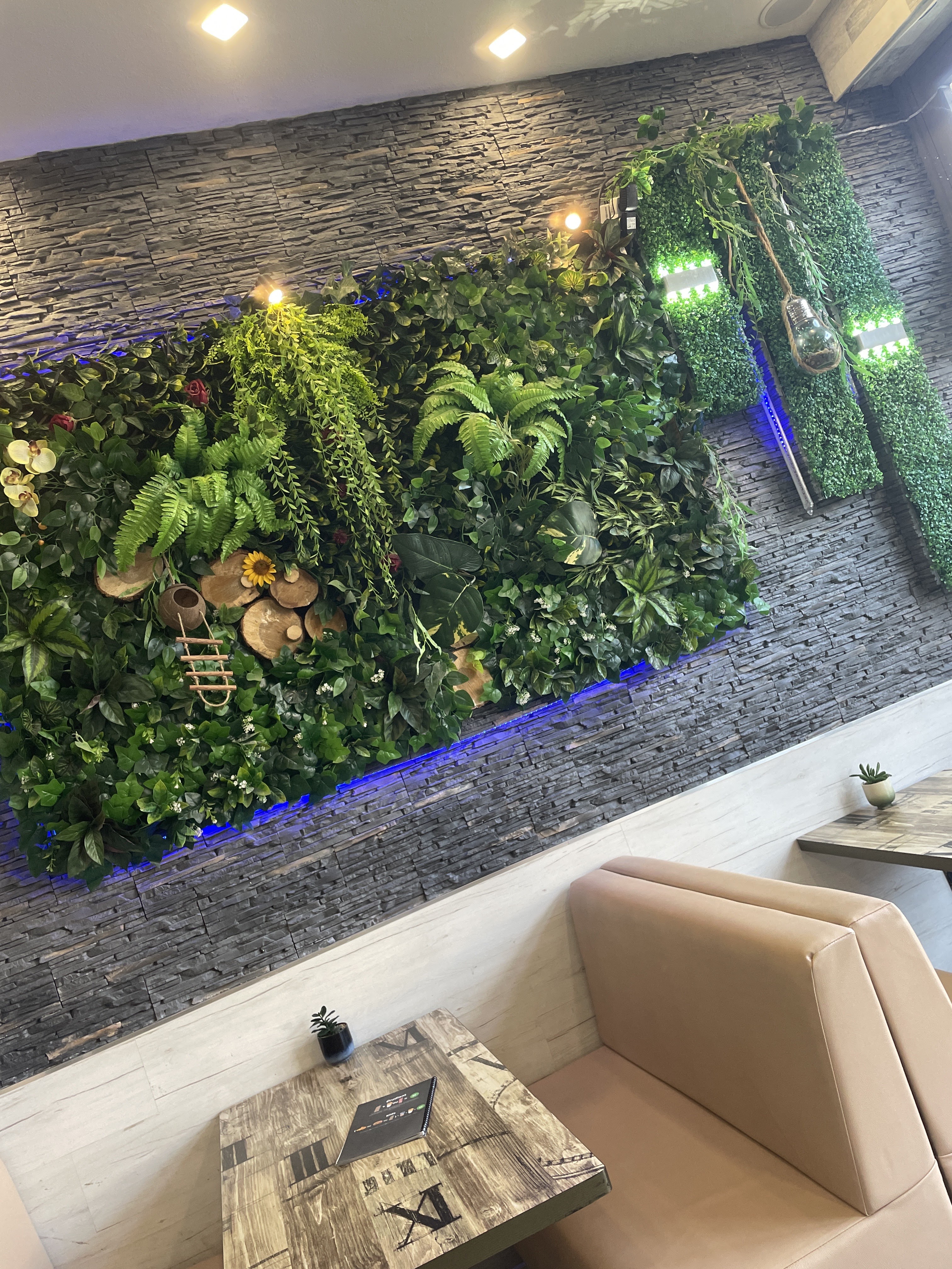 C'est un beau restaurant pour un fast food belle déco avec un magnifique mur végétal le personnel est très sympathique accueil chaleureux Leurs tacos est très délicieux je reviendrai sans aucun doute je recommande a 100%