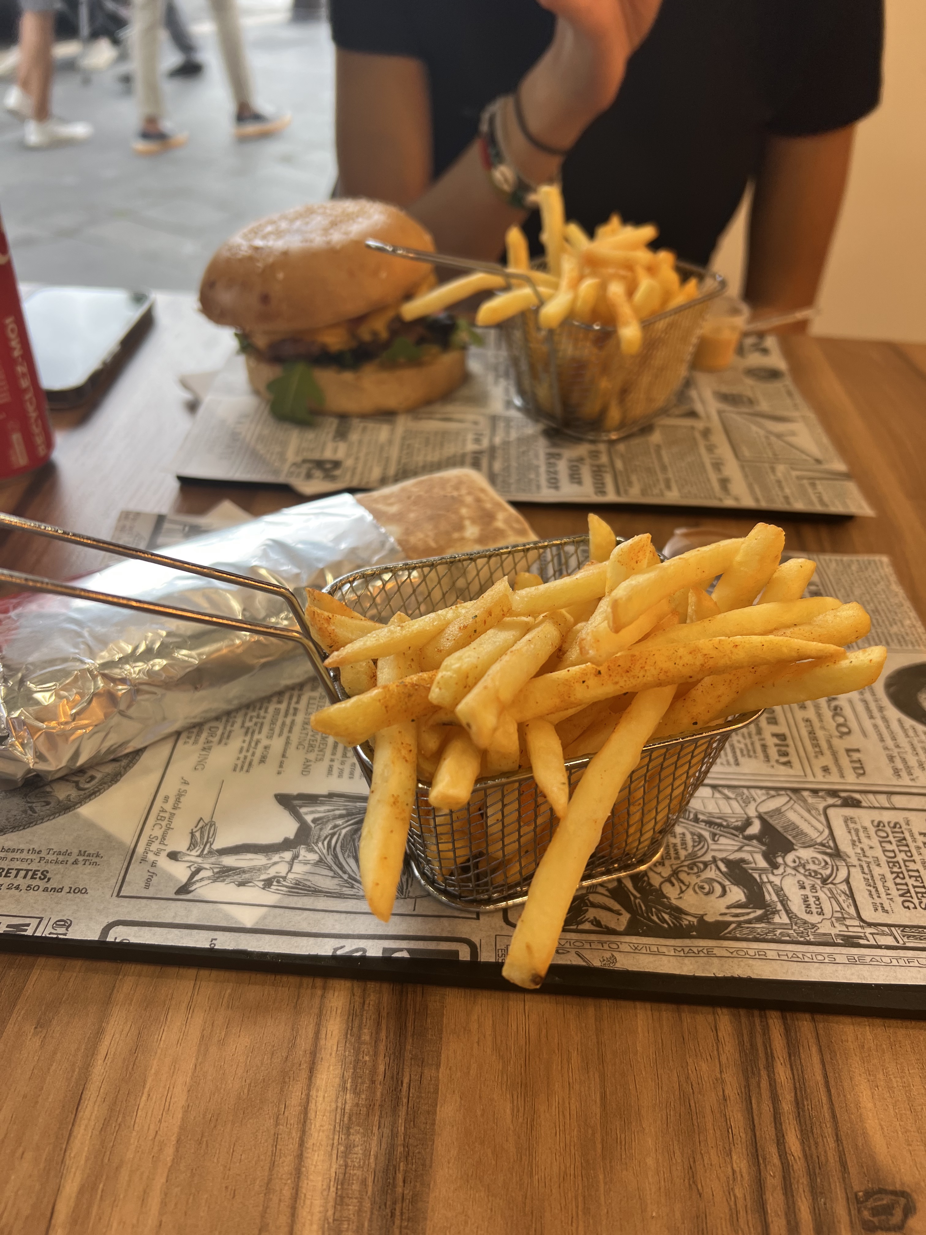 les burgers sont délicieux (le pain boulanger est parfait les oignons caramélisés rajoutent une touche sucré salé INCROYABLE), et les frites parfaitement assaisonnées je recommande fortement ! mon nouveau lieu favori !! 😊