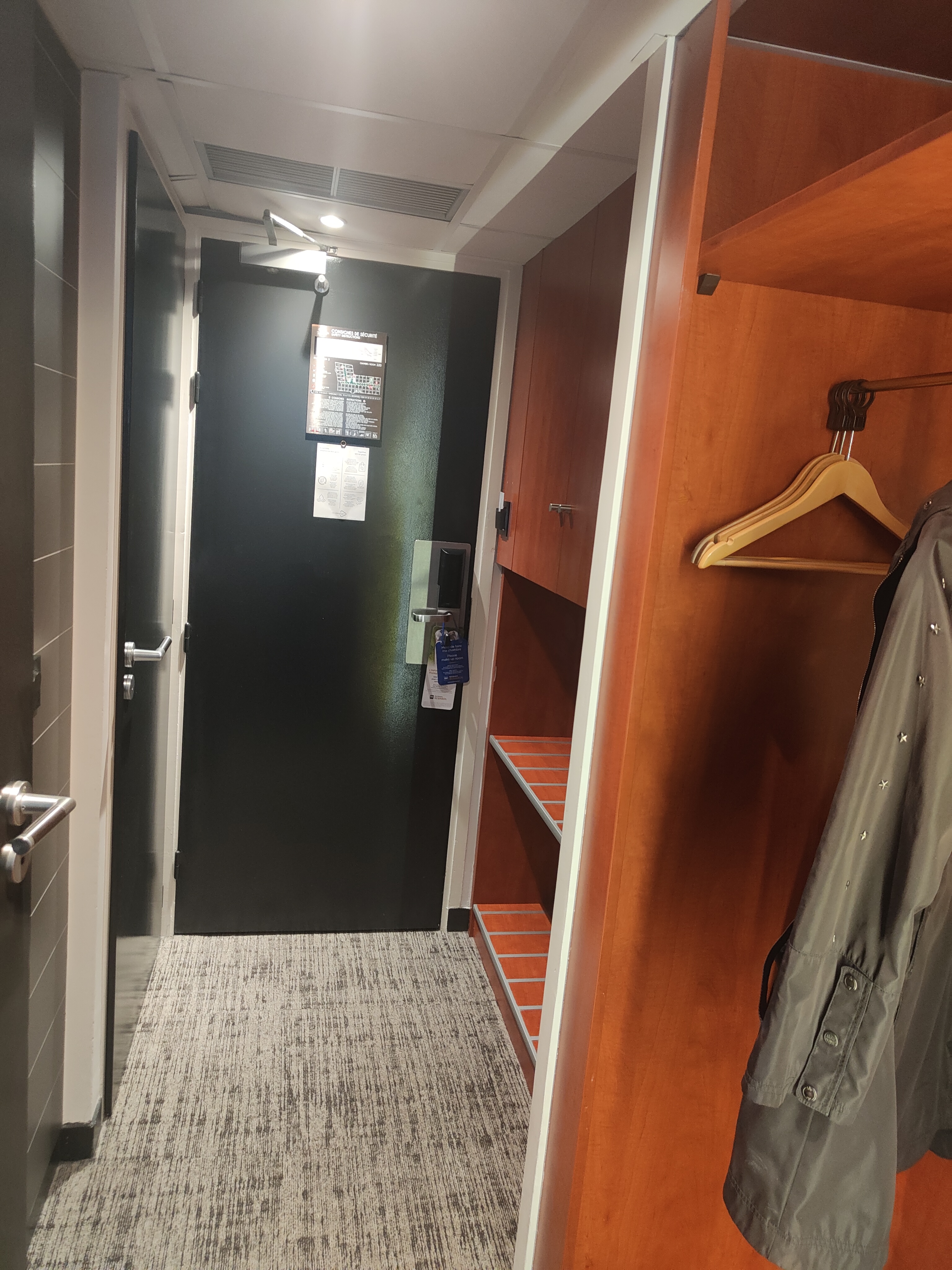 Je mets 2 étoiles pour la très mauvaise configuration de la chambre qui était extrêmement petite (le lit était petit également), et rendait pas du tout confortable l'accès à nos bagages. L'accueil au comptoir était basique et non personnalisé mais en plus il y avait une odeur très désagréable dans l'ascenseur et à l'entrée dont personne ne semblait avoir conscience ou s'en soucier. Le petit déjeuner était correct.