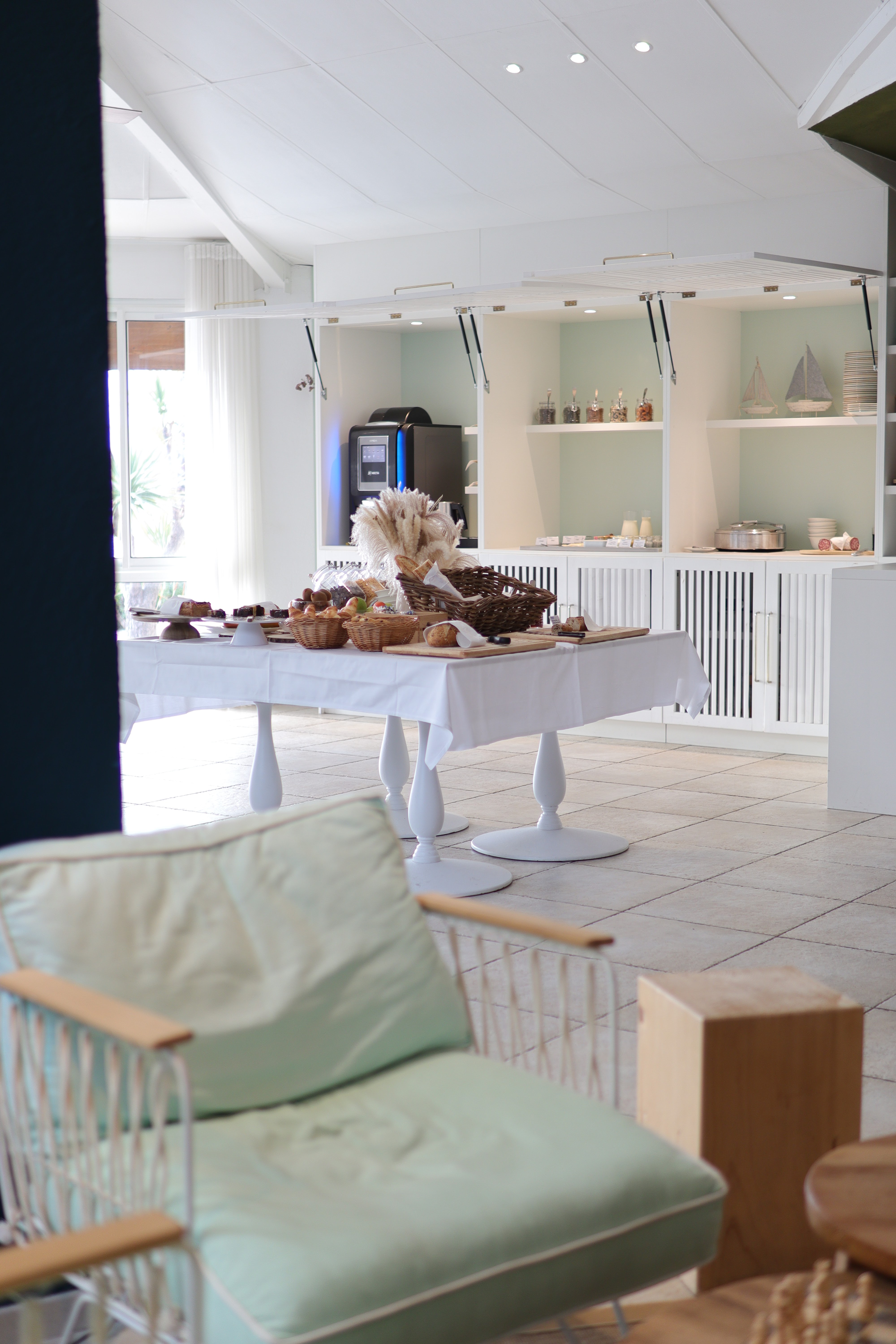 L’hotel est très beau, le côté terrasse piscine et la deco nous fait vraiment sentir en vacances (ou plutôt en weekend pour cette fois-ci). Le gros point fort est l’incroyable sympathie du personnel. Mention spéciale pour les dames du petit dej et la reception. Idem pour le resto, le soir, on a pu manger malgré notre arrivée tardive (après l’heure du restaurant), merci beaucoup! Les chambres sont très propres, simples mais bien équipées (minibar, plateau de courtoisie…) et surtout avec vue sur la mer qui se trouve juste en face, fabuleux! La literie pourrait être un peu mieux mais ça convient. Le wifi ne passe pas très bien partout, ni la 4G, pas facile d’avoir une connexion stable en chambre mais c’est un détail, on est pas là pour ça. Le petit déjeuner est varié et délicieux. Bref, excellent séjour passé en famille dans cet établissement.