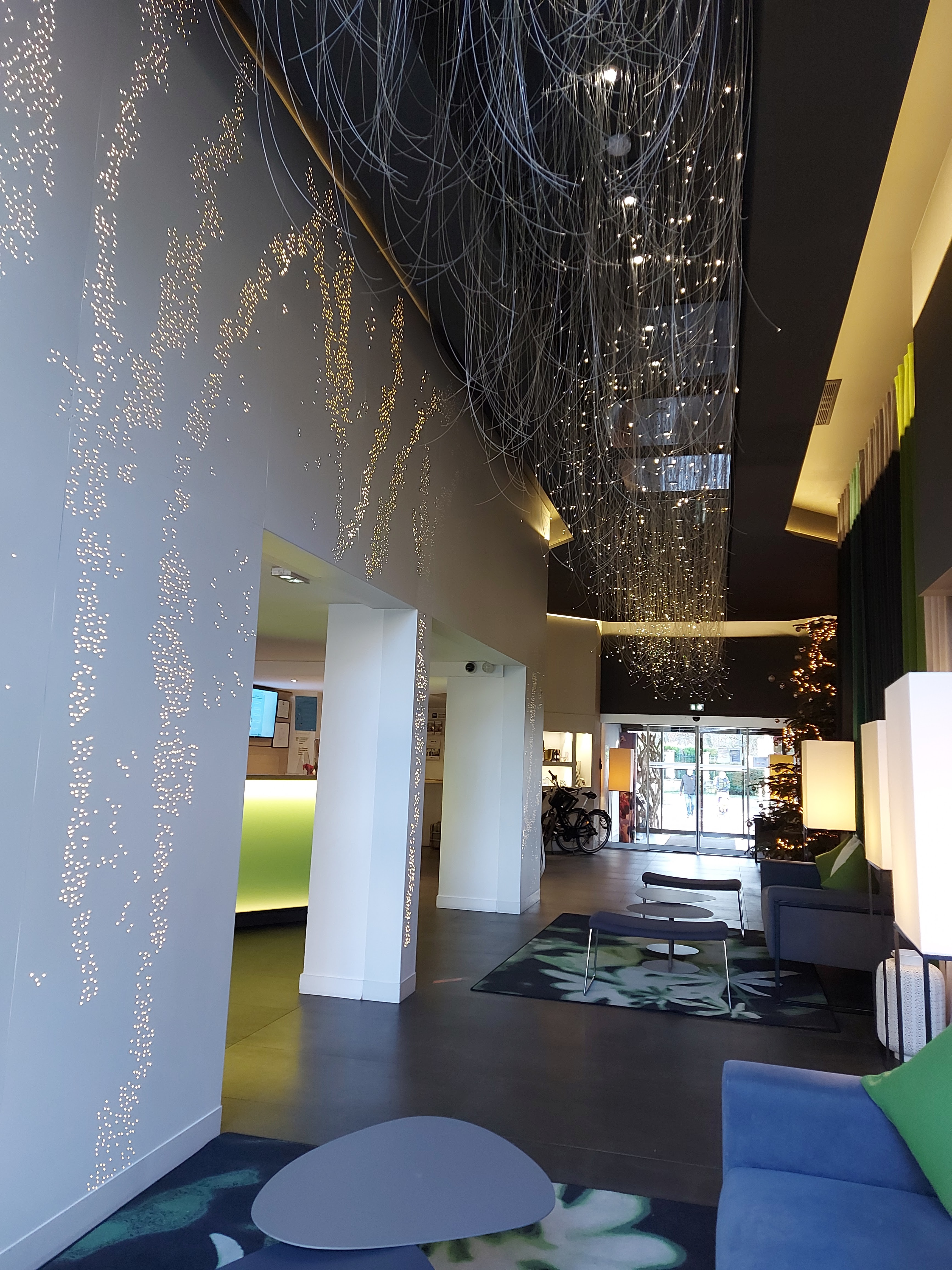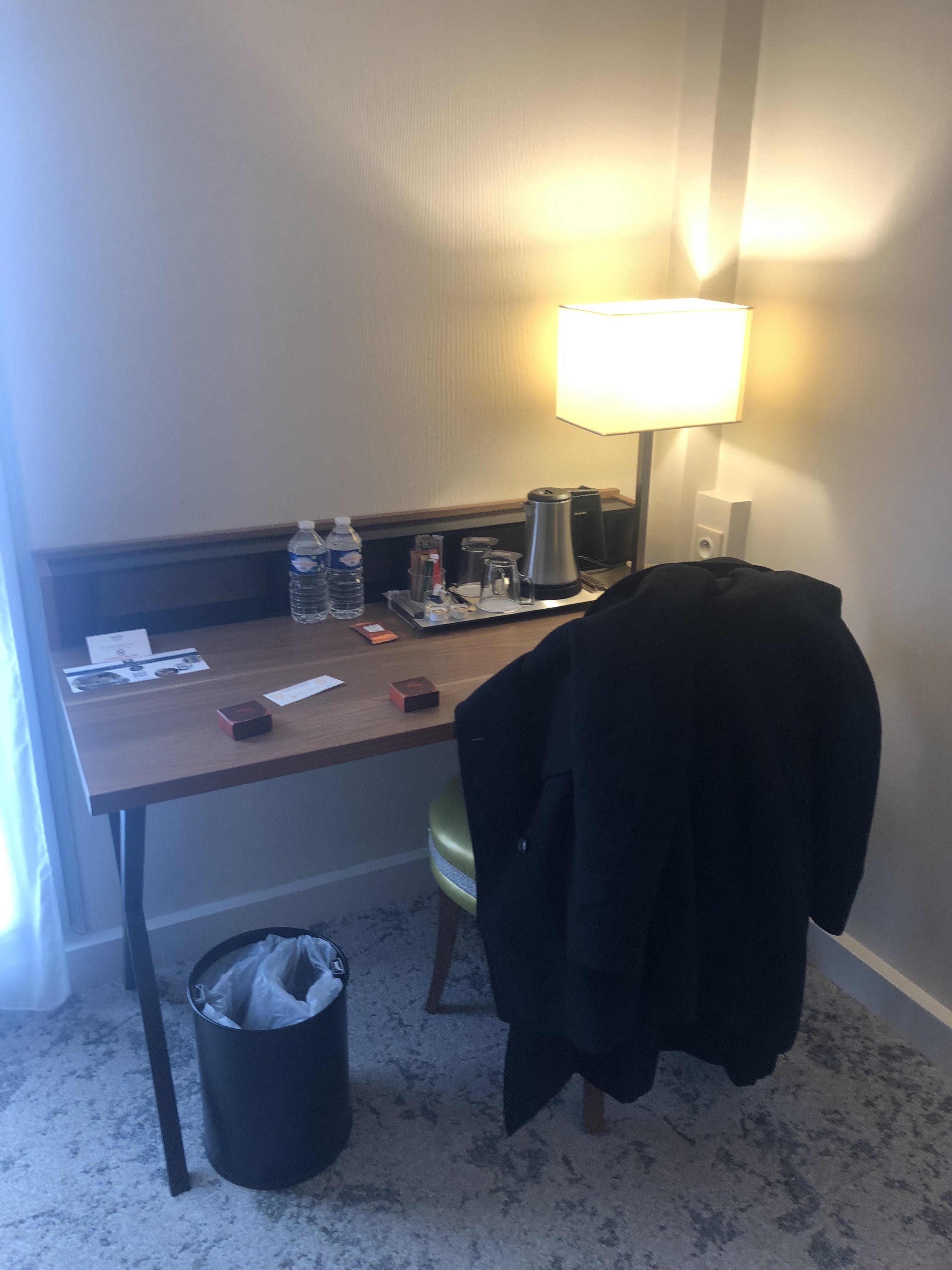 Endroit agréable et bien aménagé. Des chambres même standards très spacieuses, bien pensées en termes de fonctionnalités avec suffisamment de prises. Le seul bémol est dans le service: devant partir plus tôt et ayant prévu un petit-déjeuner, au lieu de l'annuler, on m'a proposé un.panier petit-déjeuner pour compenser. J'ai trouvé l'initiative intéressante mais au final le matin à 6h, on m'a certes donné un jus d'orange frais à boire de suite car pas de contenant permettant de le transporter, un thé dans un verre en carton pour café et surtout dans le sachet, un pauvre petit abricot bien seul à côté d'un morceau de baguette un petit pot de confiture et de miel et un carré de beurre, pratique quand on doit prendre la route et pas de quoi rassasié non plus ! Quand on paye une chambre à plus de 200€ on attend quand même un petit déjeuner à la hauteur du prix même pour une formule à emporter qui est vraiment décevante ! J'ai expérimenté des hôtels où les chambres étaient entre 60€ et 100€ et où les paniers petit-déjeuners étaient exceptionnels et de surcroît complètement adaptés aux personnes qui prenaient la route !
