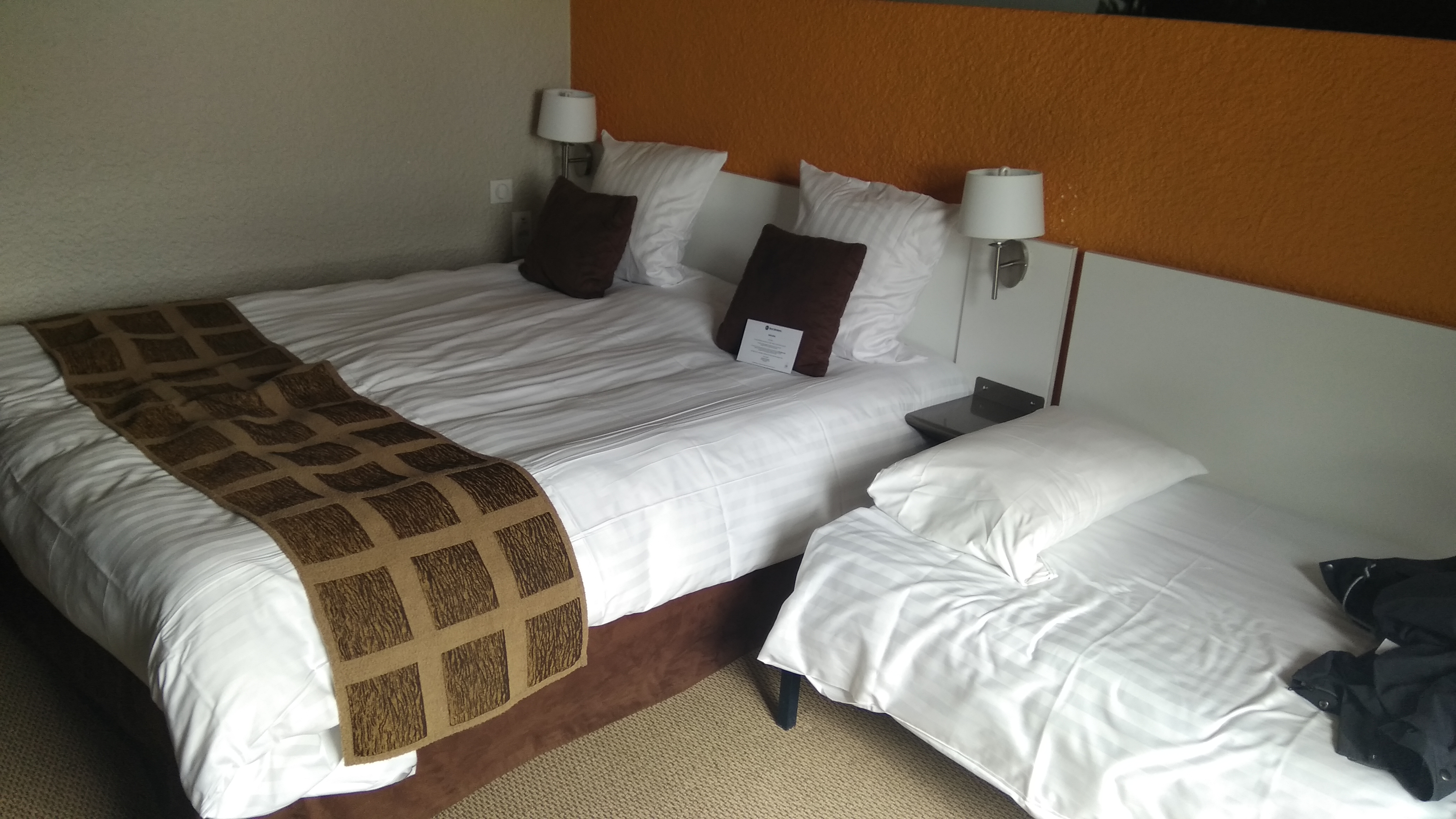 De passage du la route des vacances, nous nous arrêtons à quatre pour une nuit un dimanche soir de finale de ⚽🏆 L'hôtel est très agréable : le grand hall d'accueil pourvu d'un baby-foot, le bar plutôt sympa. L'accueil qui nous est fait est appréciable. Nous mangeons au restaurant qui possède une carte relativement diversifiée. Les enfants ont profité de la piscine. Un seul bemol durant le séjour : le nombre de prises de courant dans la chambre. En 2018, vu le nombre d'appareils à recharger, c'est problématique. Prévoyez vos multiprises.