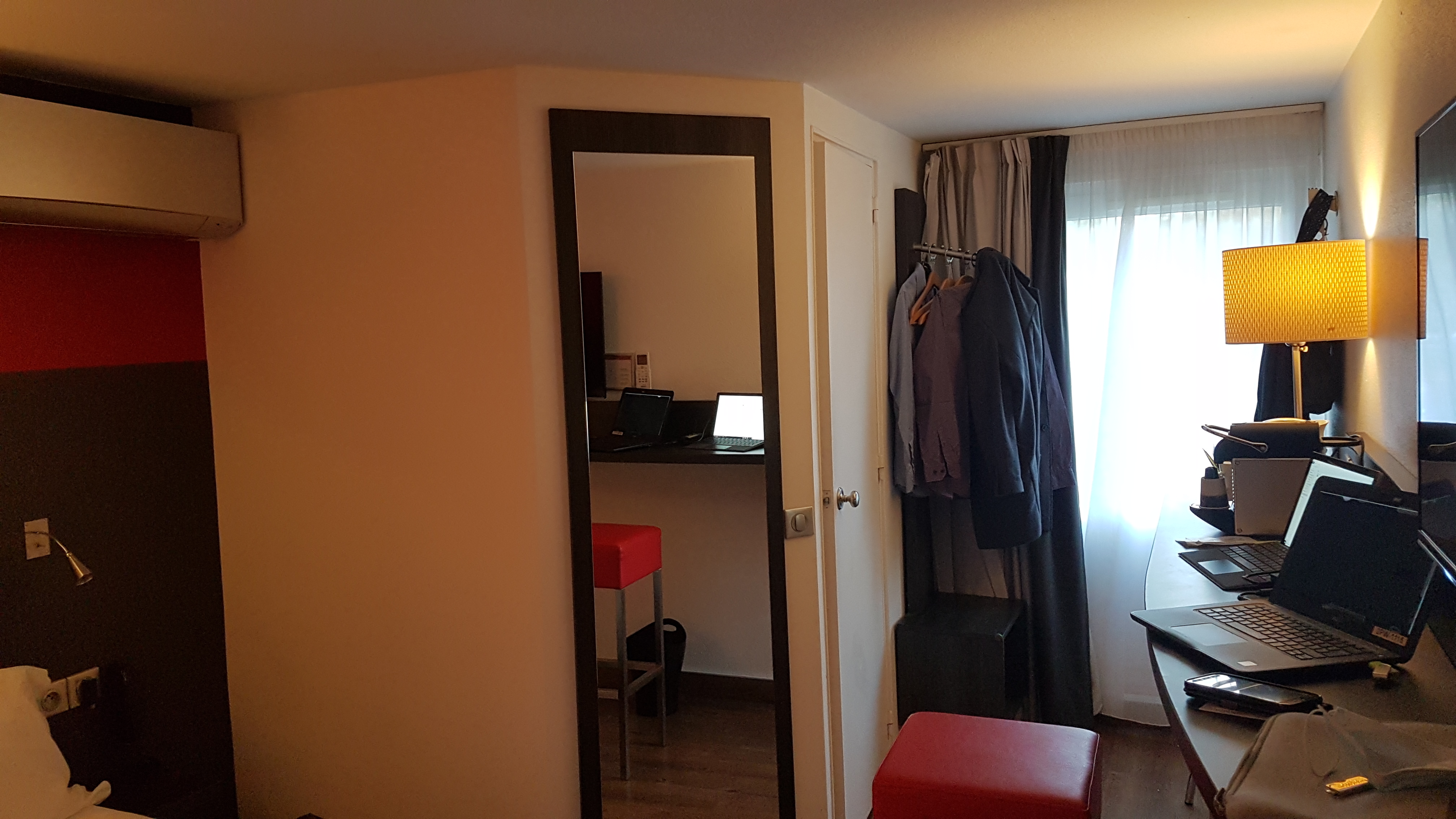 L'hôtel était ok. La chambre est assez spacieuse avec un bureau et un banc haut, ce qui n'est certainement pas très confortable pour s'asseoir et travailler sur un ordinateur portable. Lit de qualité alimentaire. Blinder donne une bonne ombre, climatisation silencieuse. La salle de bain montre des signes d'usure, avec un drain dans la douche plutôt bouché et aucun crochet pour suspendre correctement les serviettes. J'ai trouvé que le petit déjeuner était varié mais plutôt cher, pas trop frais et un peu désorganisé. Le parking est spacieux et confortable. Mise en Wi-Fi et assez rapide. Dans l'ensemble, un bon rapport qualité/prix.