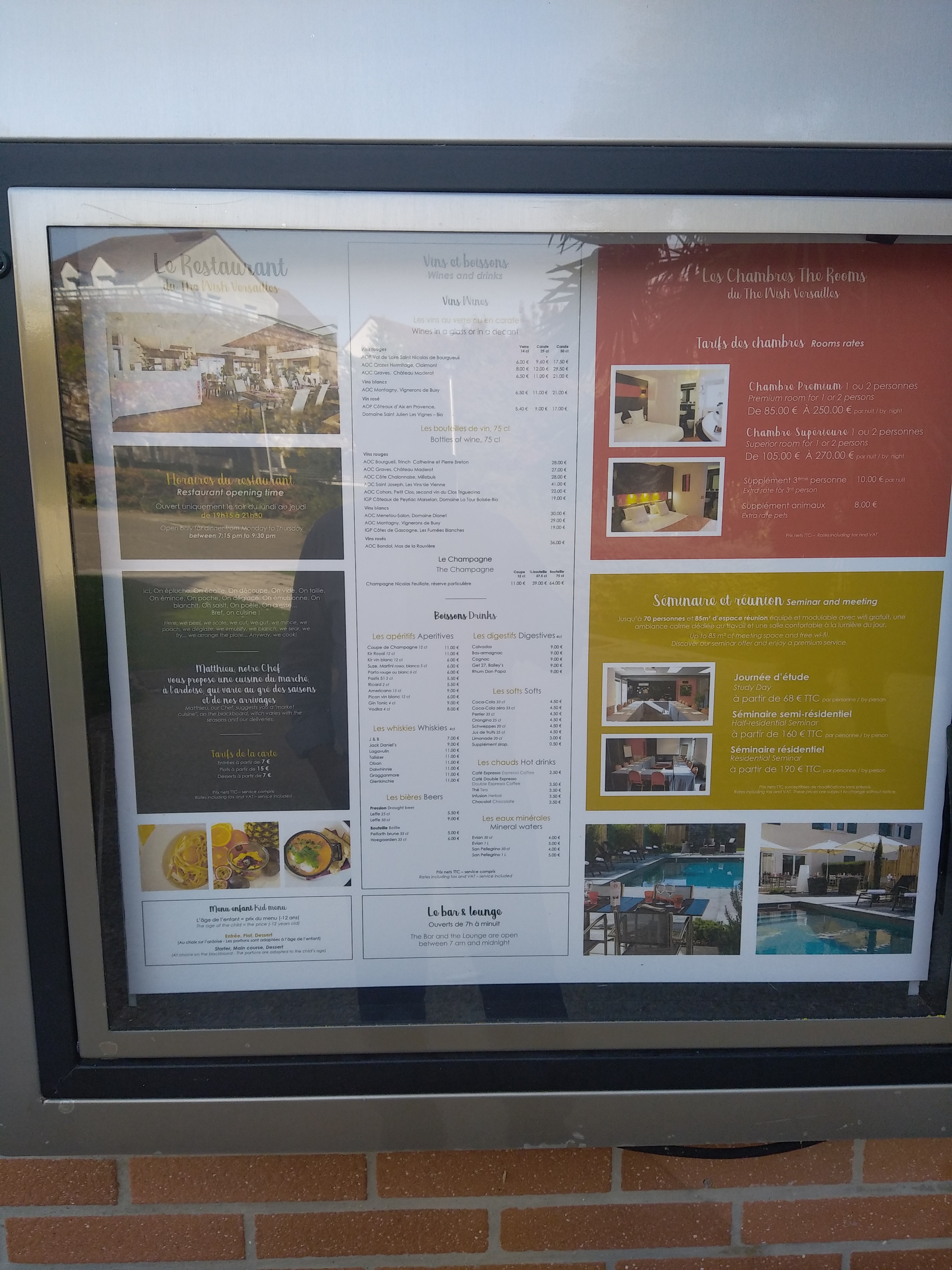 18/20. Personnel sympathique et réactif. La situation est idéale à 10 minutes à peine du château de Versailles. Hôtel dans un quartier calme où l'on a très bien dormi. Le plus indéniable de cet établissement est le restaurant, qui est un petit bijou. Carte réduite mais plats excellents très bien travaillés. Seul bémol, la chambre était un peu petite, mais bien équipée