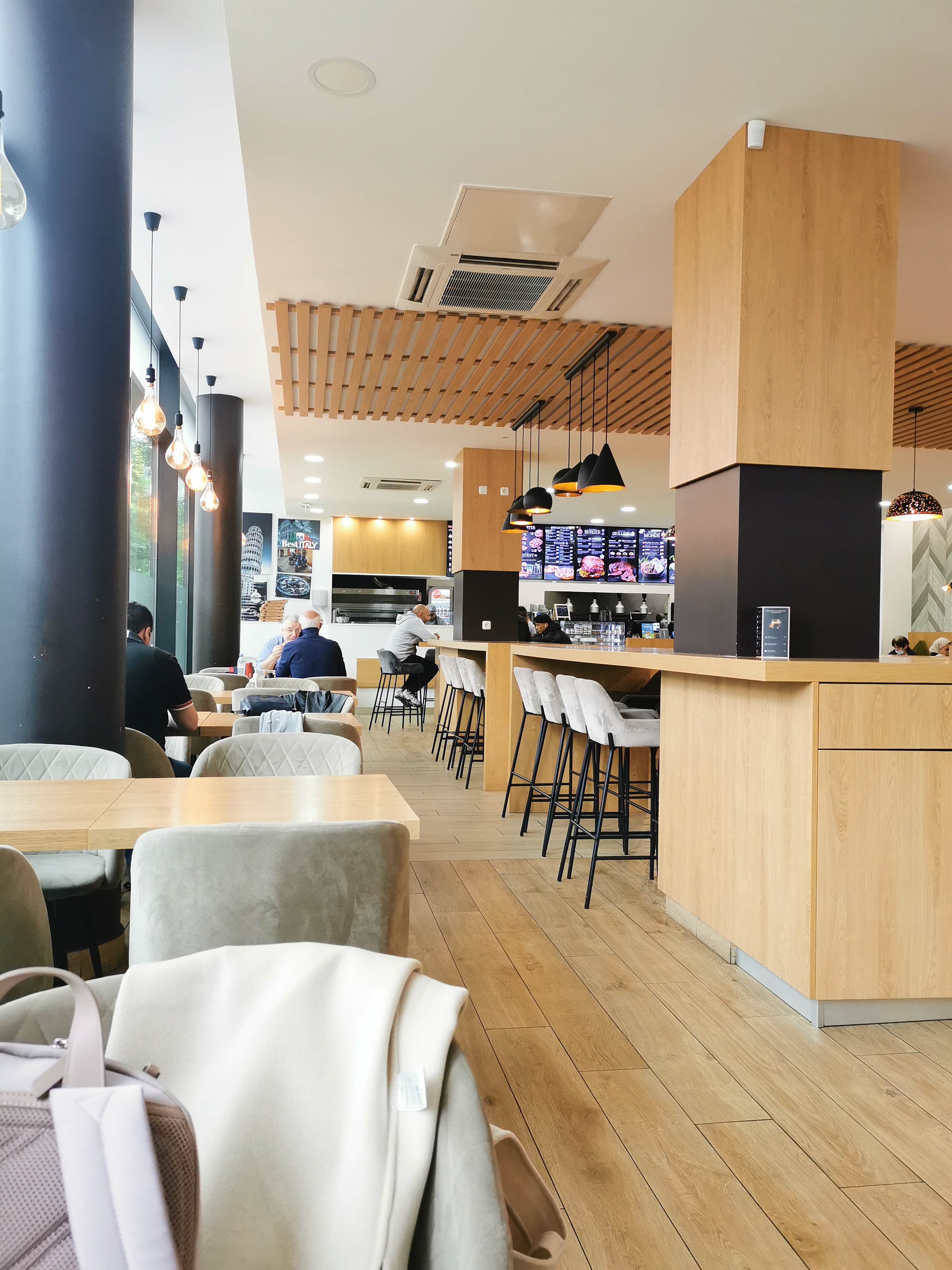 La salle est très spacieuse , j’ai pris un burger est je trouve que la viande est plus que douteuse , qualité prix je trouve sa chère boisson n’ai pas inclus dans le menu , cordialement