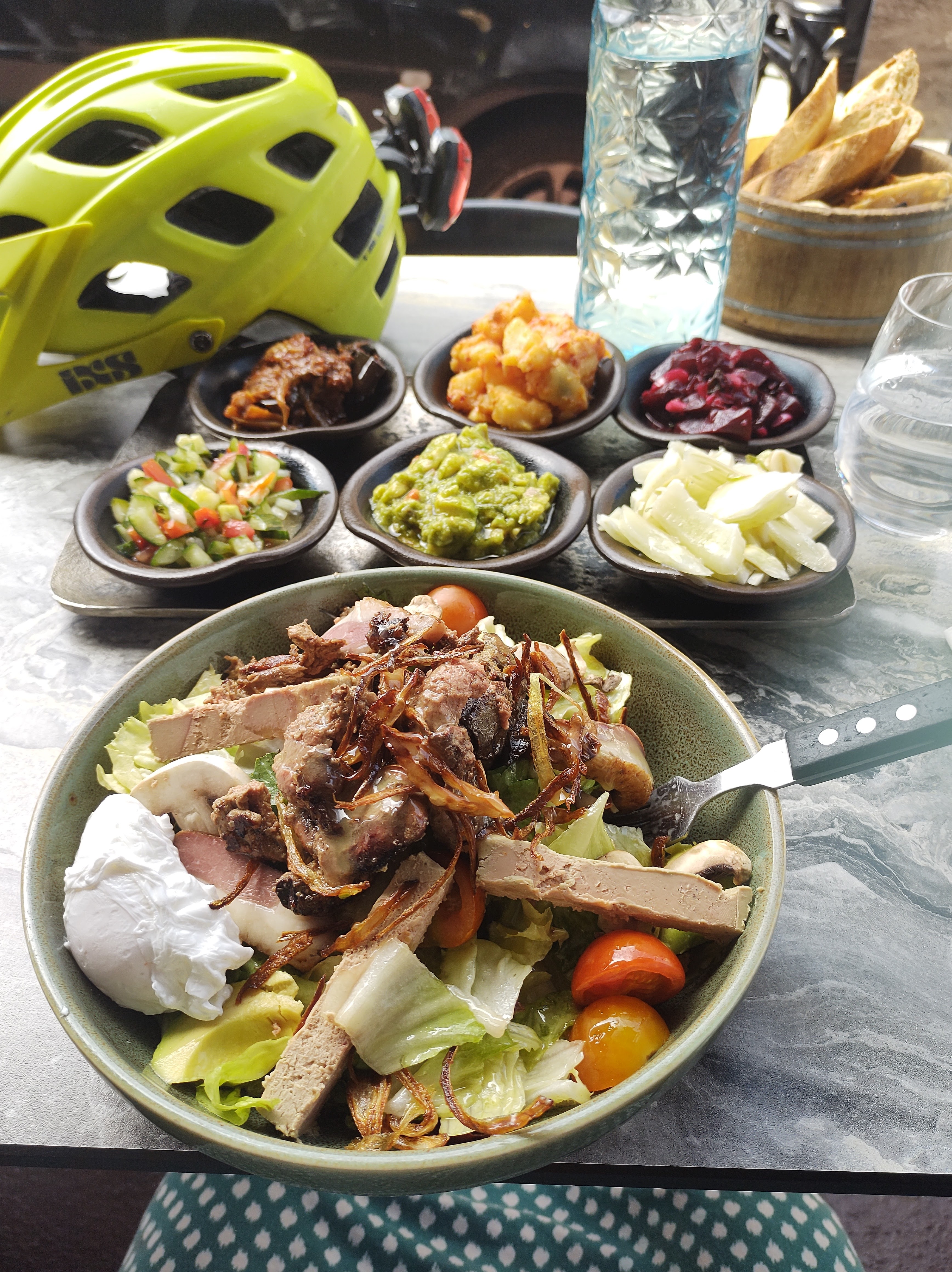 Excellent déjeuner savoureux - plus que ce que je pourrais manger. Le déjeuner est venu automatiquement avec les 6 tapas. Un patron très sympa m'a permis de recharger la batterie de mon vélo électrique et de me trouver un bon espace pour poser mon vélo pendant que je mangeais