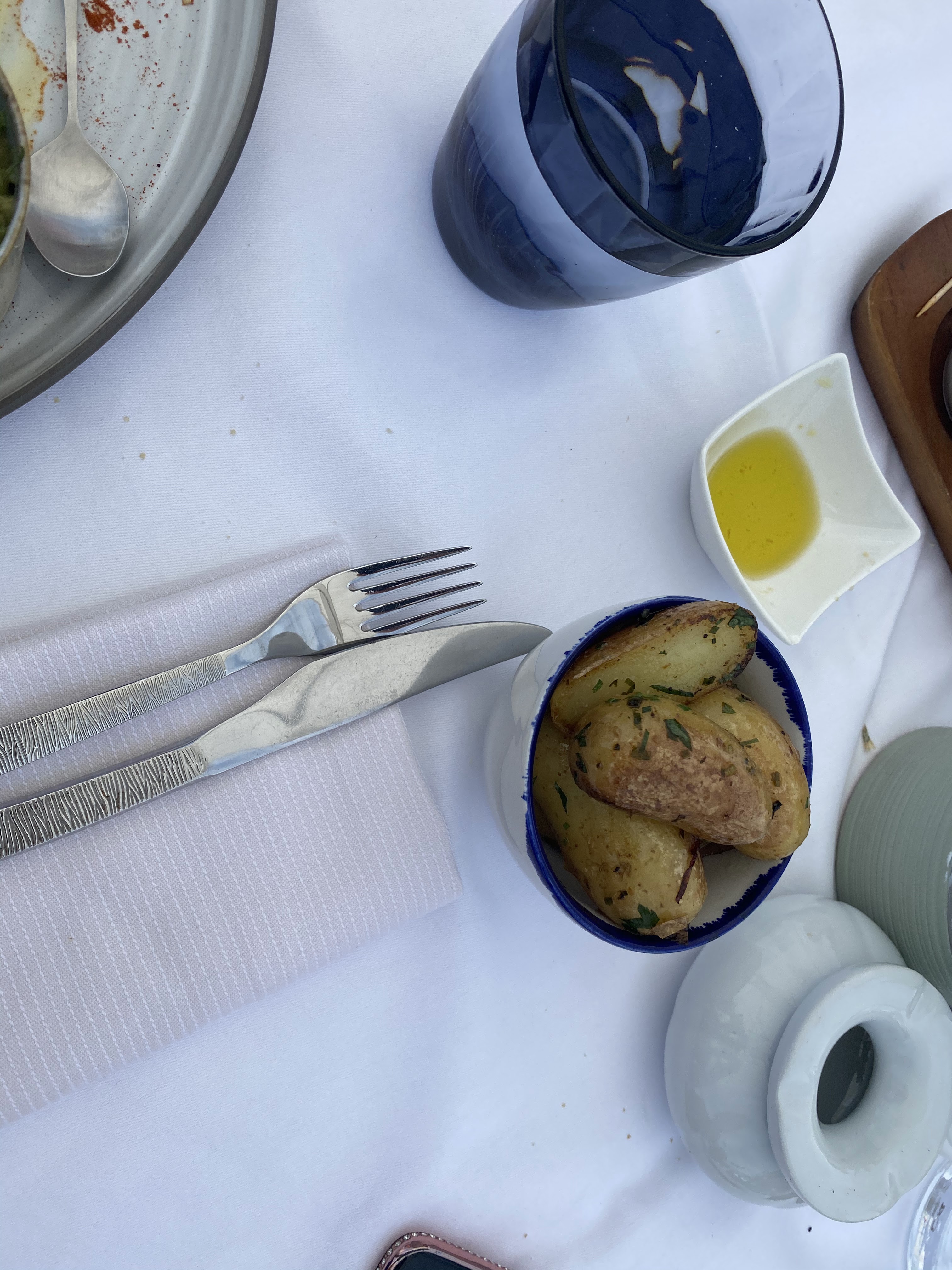 Le service était excellent, ils ont fait de leur mieux pour nous accueillir car nous avions un enfant en bas âge et un bébé et nous étions un grand groupe avec différentes demandes alimentaires et allergies. La nourriture était bonne mais rien d'extraordinaire, mais dans l'ensemble c'était super. Le stationnement était un défi car pendant la haute saison, il était presque impossible de trouver une place à proximité du restaurant. Les toilettes méritent plus d'attention car nous ne les avons pas trouvées propres. L'atmosphère était agréable car il y avait un DJ qui jouait de la musique, de la brume rafraîchissante et de la climatisation.