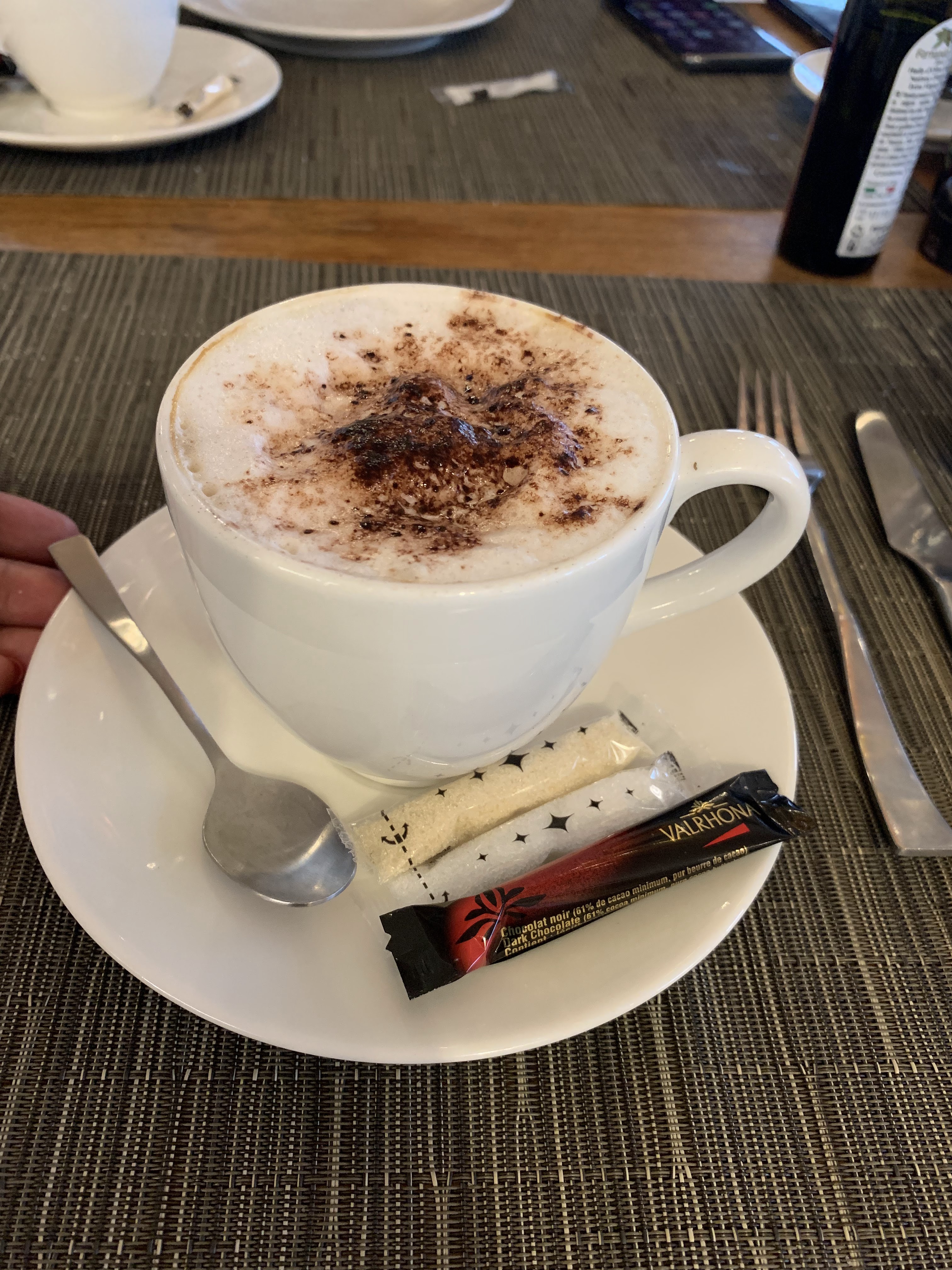 Bel endroit au coin de Cannes. Pas si facile à trouver. Très bonne ambiance à l'endroit. Ils ont aussi un DJ. Sièges extérieurs et intérieurs disponibles. La burrata pour 2 personnes n'est pas aussi grosse que je le pensais. De plus, ce n’est pas la meilleure burrata que j’ai goûtée. Je lui donnerais un 7/10. Ils ont oublié de nous apporter notre boisson. 😔 Nous avons mangé de la daurade et du bar en plat principal. C'était bien cuit mais la vinaigrette était fruitée, ce qui n'était pas mentionné sur le menu. La salade verte était trempée dans l'huile d'olive, ce que j'ai remarqué une fois arrivé au milieu de la salade. Les pâtes à la truffe et aux amandes grillées étaient bonnes. Pour être honnête, c'était une grande portion pour une entrée. Le cappuccino était énorme et liquide. Ça avait l'air bien mdr. Le bol de fruits était immense. Du sucre en poudre était saupoudré sur des fruits si sucrés et frais. L'espresso et le macchiato ne sont pas bons tous les deux. Mais c’est un endroit agréable pour se retrouver.