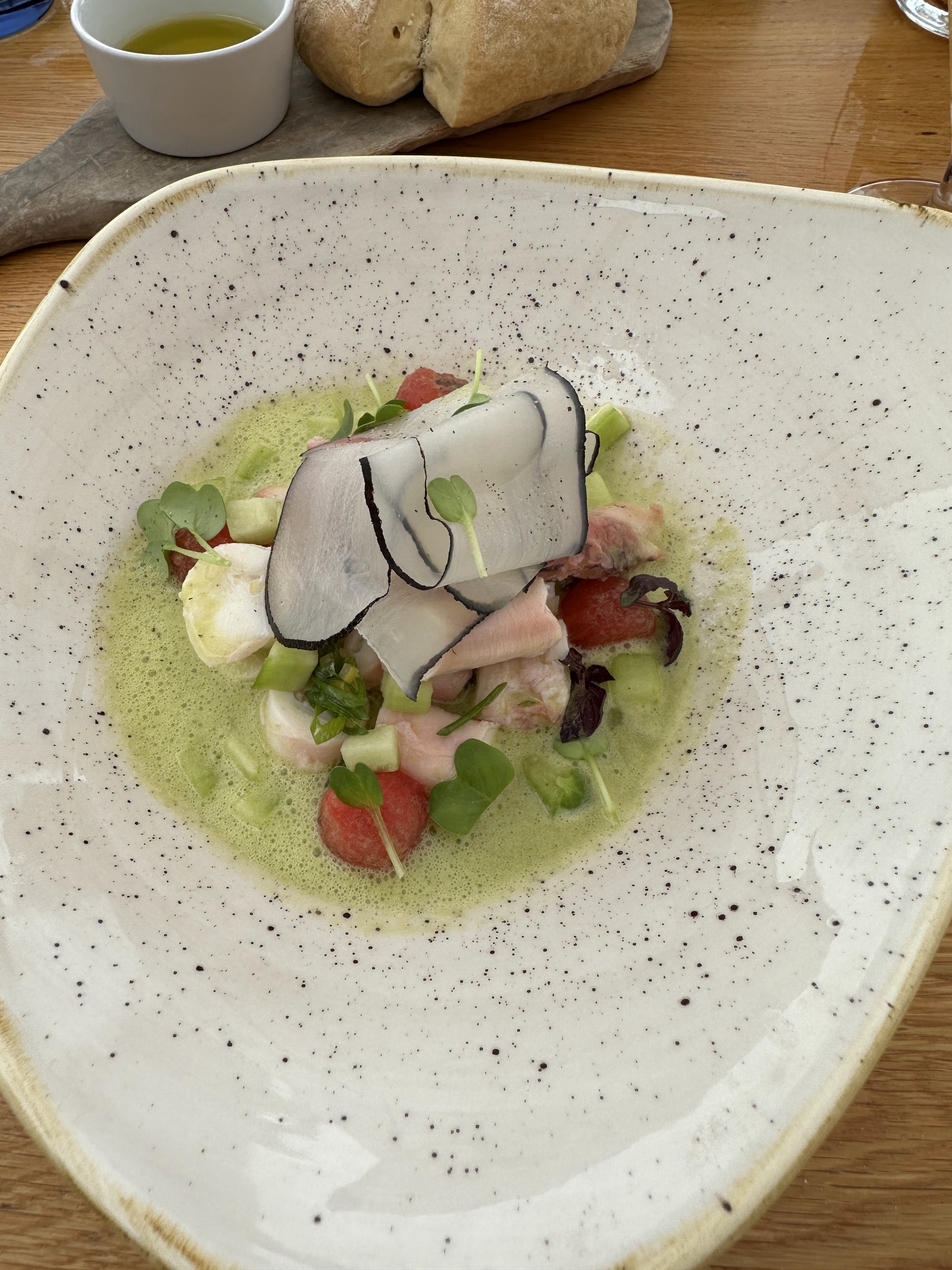 Ce qui sauve ce restaurant c’est son contexte : déjeuner sur le ponton avec la mer à gauche et à droite dans un ciel bleu superbe 😍! Mais c’est tout...😢 car pour le reste : -chablis premier cru servis bouchonné ! ils nous apportent donc une autre bouteille pour la remplacer et cette fois le Chablis était servis tiède et légèrement pétillant ! Une honte pour un restaurant dans le complexe Barrière... -les plats bons mais insuffisant en quantité pour un plat de midi avec des frites surgelés ! Le nom Colegreco est ici purement à titre commercial ne vous attendez pas à du qualitatif. Vous payez le contexte point. Très dommage tout de même dans un tel endroit...