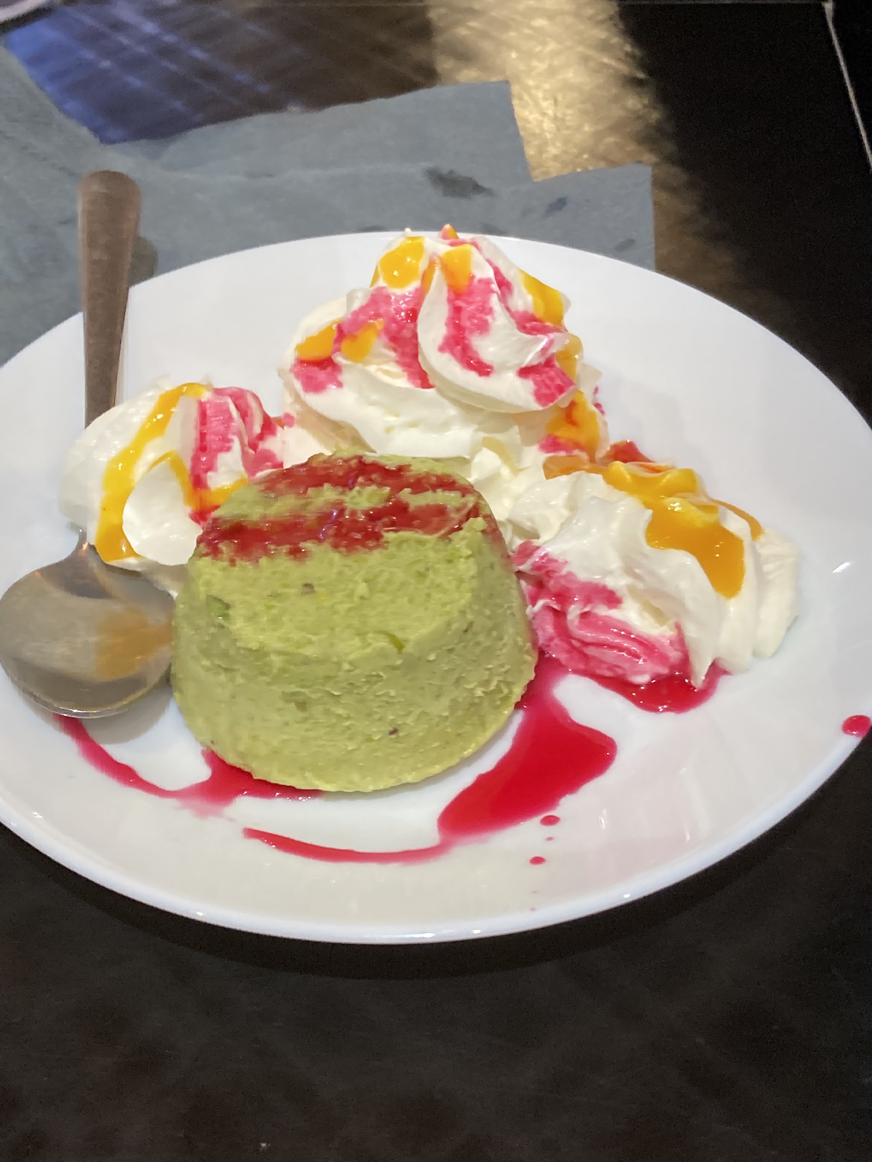 Bonne quantité. Le prix est correcte. Portions à niveau. Par contre le courri d’agneau a des nerfs. Le sorbet à la pistache fait maison est un peu trop dur. Le service a été lent. J’ai été malade le lendemain..