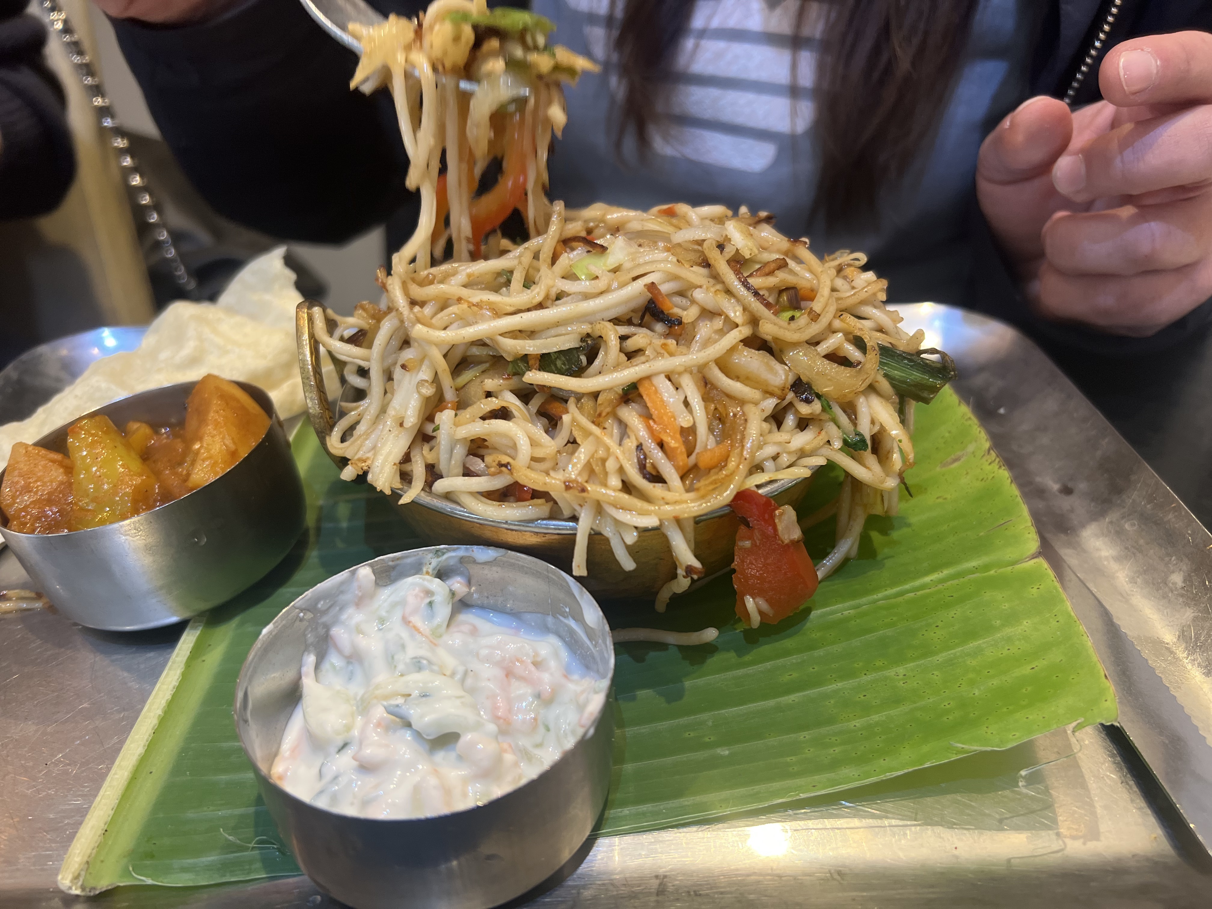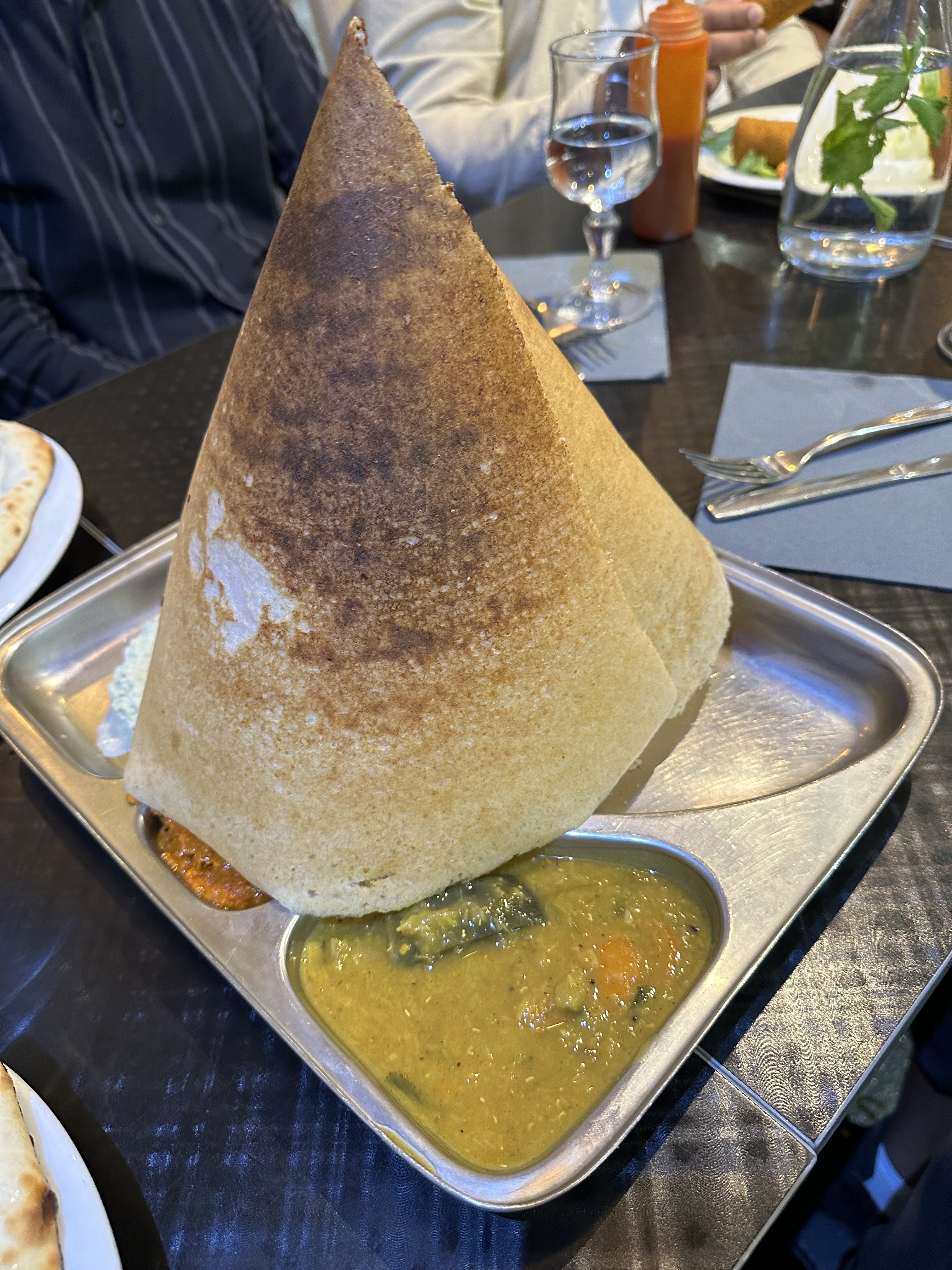 Expérience d un plat végétarien copieux et des petits légumes épicés à souhait : un dosaï. Un endroit bien sympathique où j ai pu découvrir beaucoup d'indiens et leur cuisine, du personnel agréable et efficace . Merci à vous