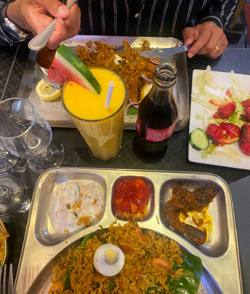 Ce restaurant indien est excellent avec des plats généreux. Nous avons commencé par déguster des rolls au bœuf et des Cheesenaan en entrée, je recommande vivement leur délicieuse sauce verte à la menthe. Pour le plat principal, nous avons choisi différents plats dont le biriyani au poulet accompagné d’un tandoori et d’un oeuf, ainsi que différents kothu parotha ( agneau, boeuf et poulet) et du butter chicken masala servi avec du riz basmati. Le rapport qualité-prix est imbattable et le service est rapide. Je recommande si vous êtes dans le coin !