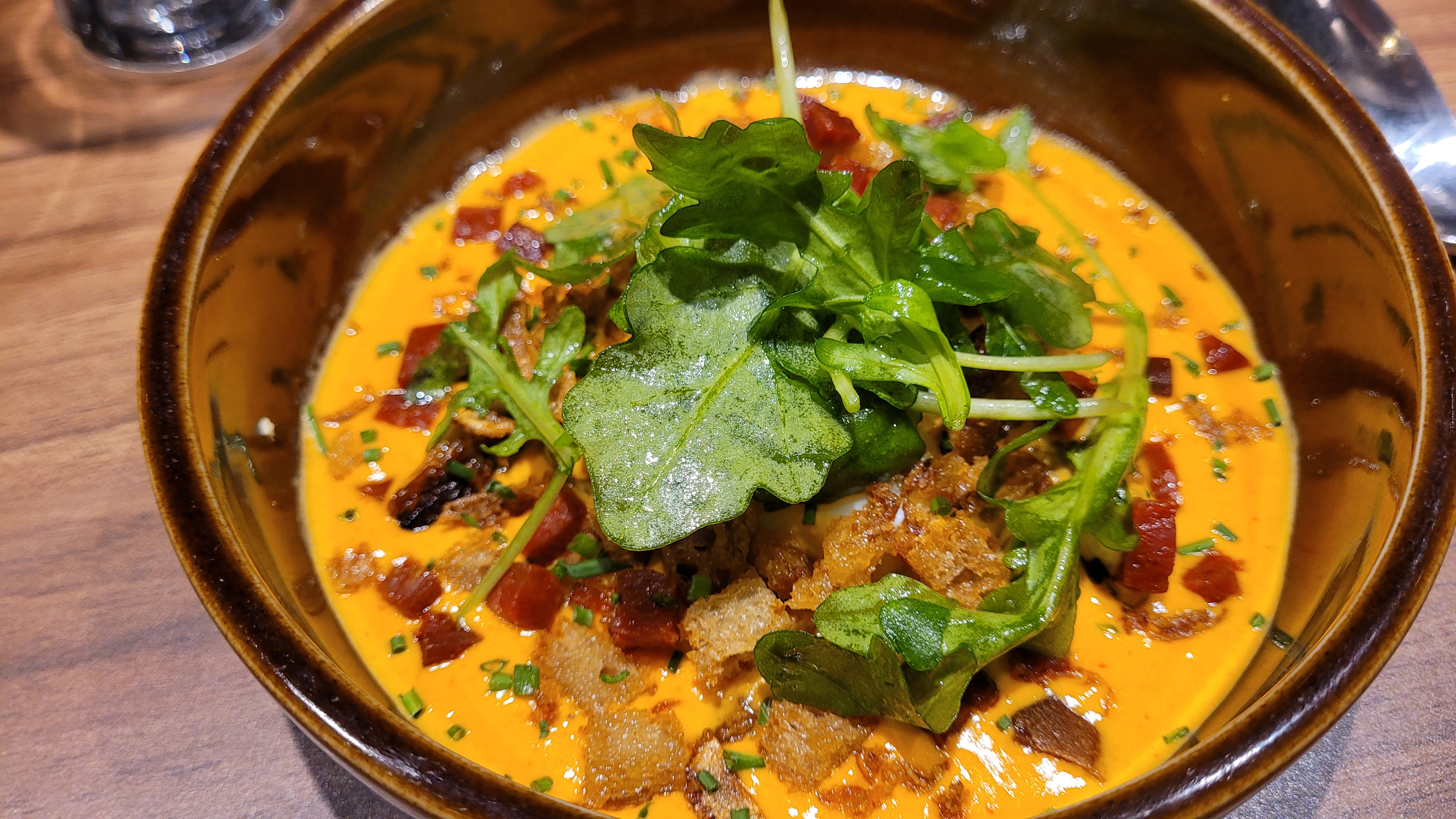 Arrivé dans une ambiance sympa avec très jolie déco. Les tables étaient un peu serrées, et une fois le restau plein, un peu bruyant. Les plats étaient très bon ! Et la serveuse au top, soucieuse des allergies ! En bref, un restau très agréable ! Pensez à réserver.
