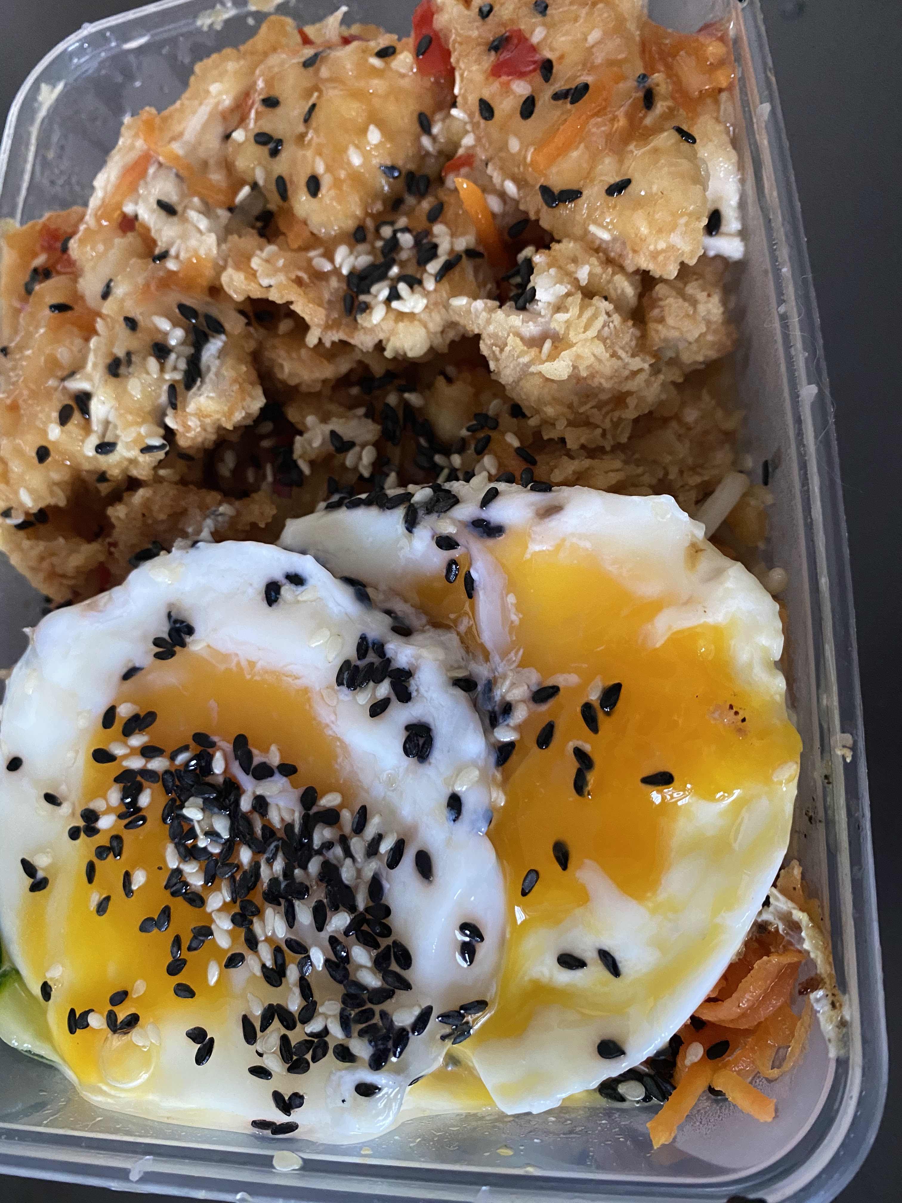 Première expérience culinaire Coréenne Bi bim bap poulet saté excellent 🤤 Tarif très correct et plat copieux