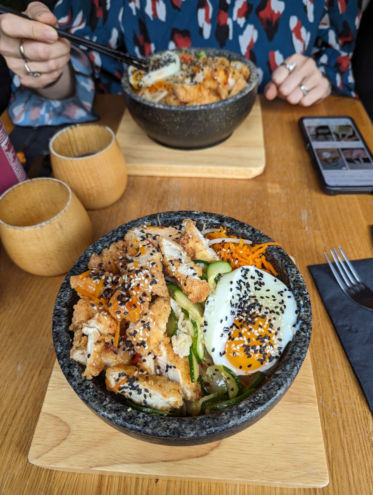 Nous recommandons vivement de prendre le bibimbap au poulet crousty. Nous nous sommes régalés, les portions étaient généreuses et c’était très goûteux ! La vaisselle est originale et l’ambiance est très intimiste. Si j’ai l’occasion de revenir sur Lille j’y retournerai avec plaisir ! je ne peux que recommander cette adresse. 🍲En plus ils proposent des formules midi !