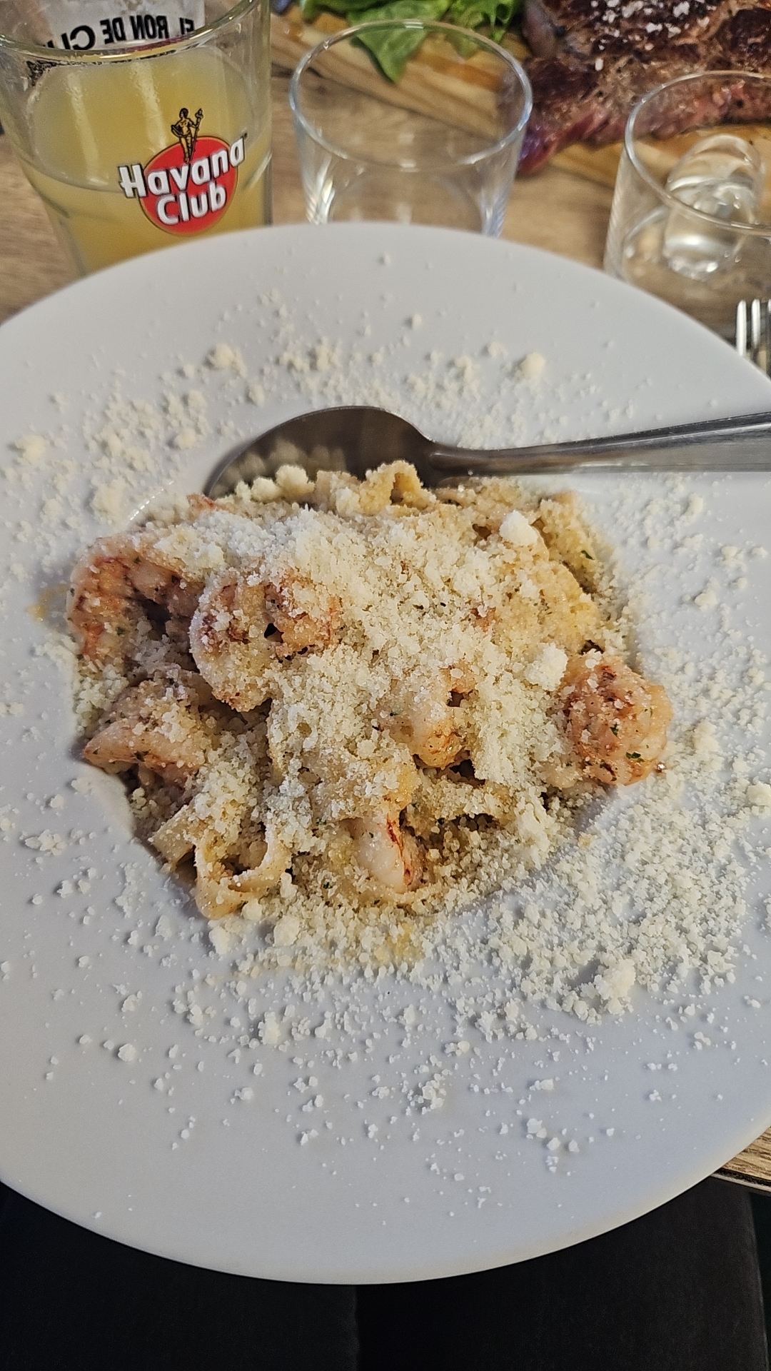 Nous avons mangé des tagliatelles aux crevettes très bon plat mais pas assez copieux. Sinon le service est impécable.