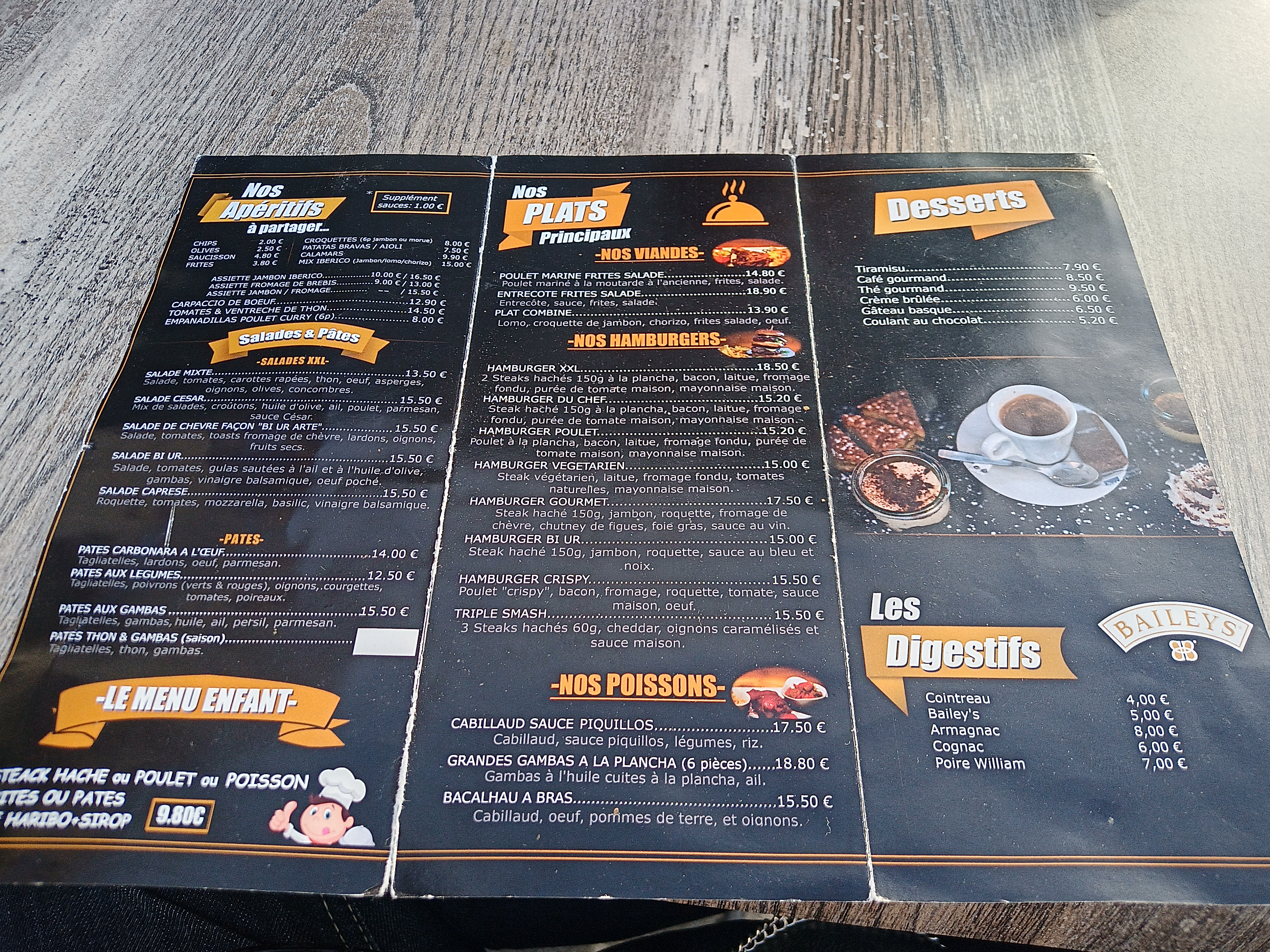 Service rapide excellents hamburgers excellent Tapas ambiance très sympa et agréable surtout ne loupez pas un repas dans ce resto je reviens sans soucis
