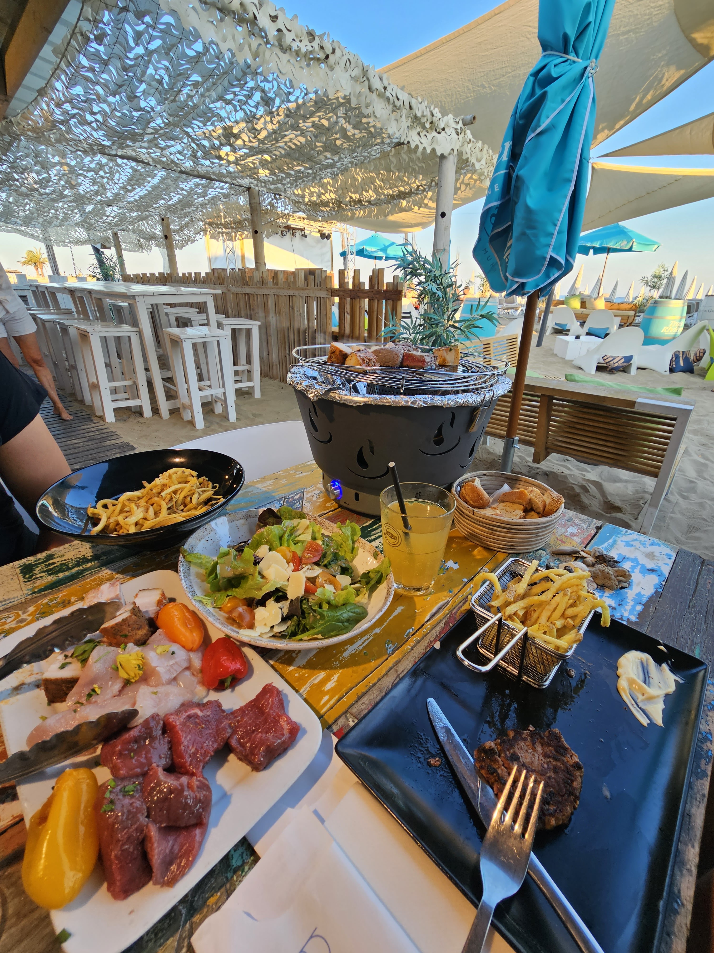Prix justifié du cadre de la plage, environnement sympa et détendu. Serveurs souriants, déroulé du service correct avec l'affluence. Plats simples, bons et efficaces. Le bon spot entre amis pour détente sans prise de tête.
