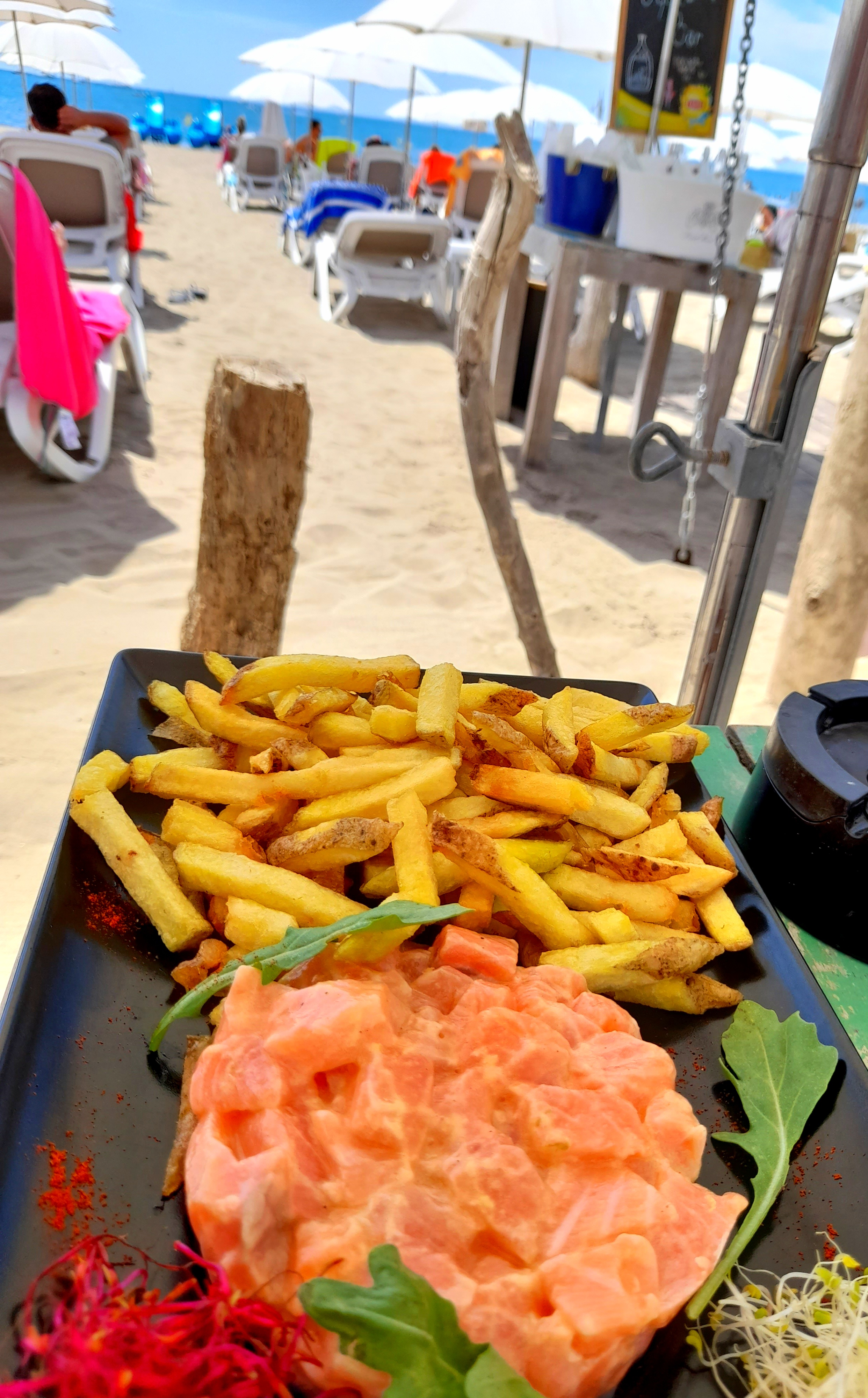 Plusieurs années qu'on vient prendre du bon temps sur un bed qui sont confortables face a la mer, l'ambiance est plutôt calme, sympa pour chill entre amis. Malheureusement nous avons vu la qualité baissé d'années en années.. La qualité des plats restes acceptables mais bien moins bonnes qu'avant, les cocktails très moyens. Cette année plus de carafe d'eau, obligation d'acheter une Evian a 6€ les 75cl (pour rappel la loi oblige les restaurants à fournir gratuitement de l'eau potable, mais bon..), les frites fraîches ne le sont pas non plus, et lorsque nous avons demandé des serviettes l'ont nous a amené 1m d'essuie tout.. Heureusement la bonne humeur des serveurs et plagistes rattrape le coup 5* à eux.