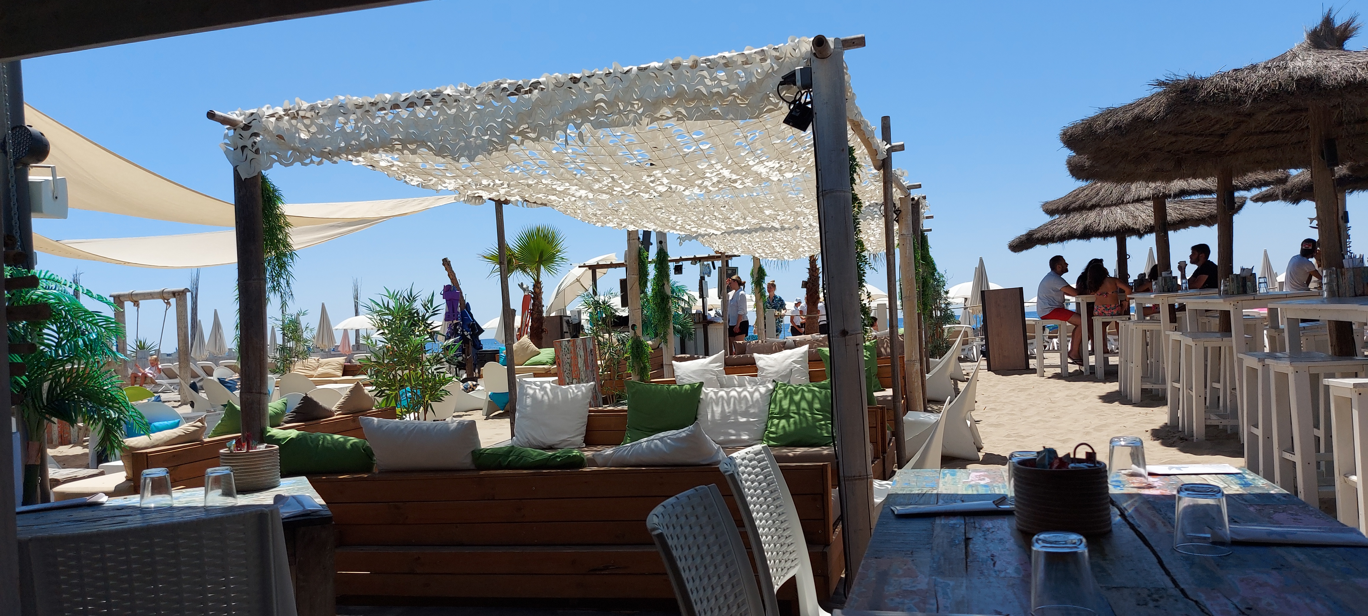 Très beau lieu en bord de plage pour manger et boire un coup Avec des dj pour nous faire danser sur le sable