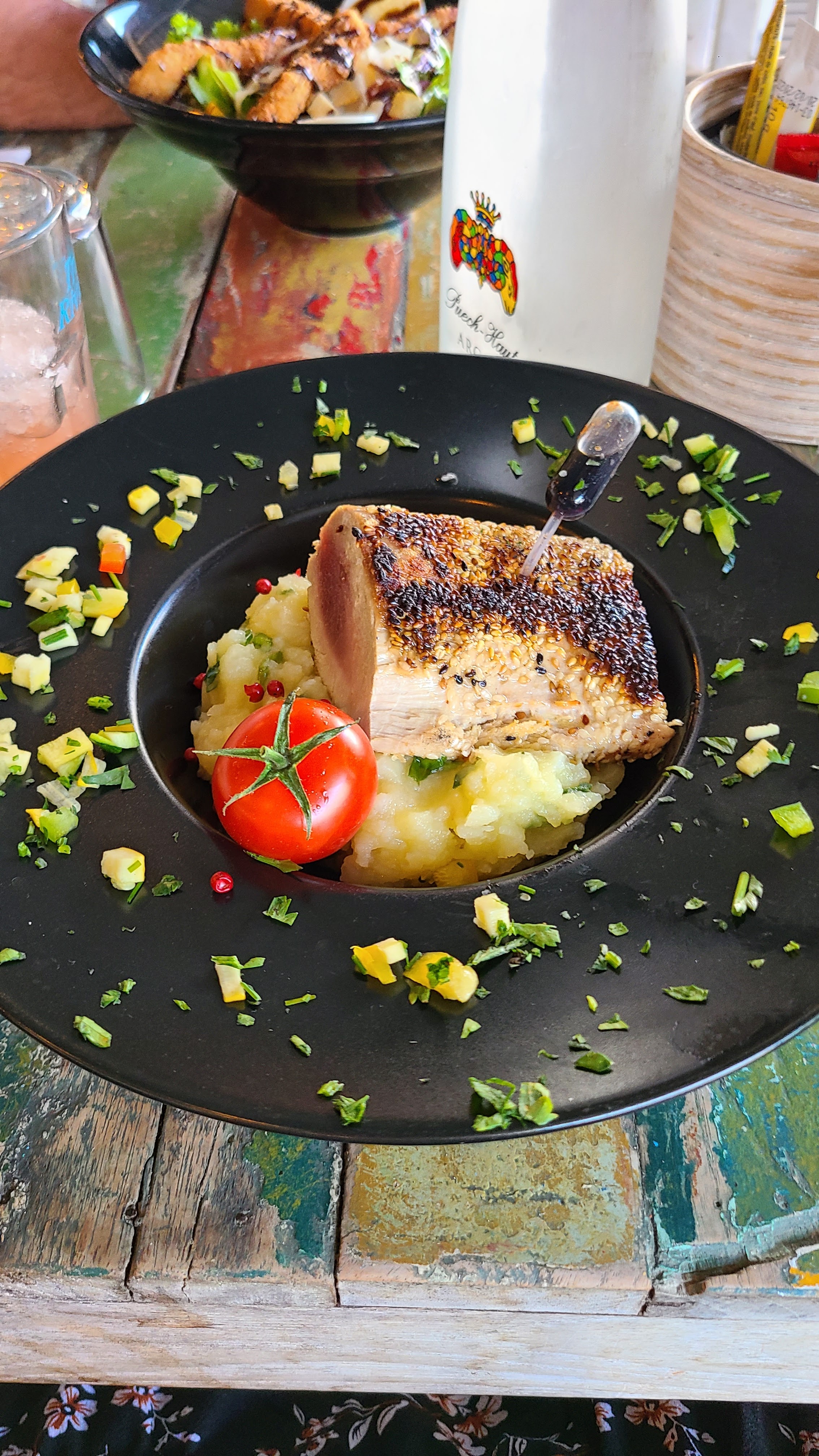 Emplacement superbe ! Plats très bons et très généreux, prix raisonnables. Service correct. Nous avons pris 2 barbecue, un poisson, l'autre viande. Seul bémol doggy bags : on nous le ramène à table : viande et poisson mélangé, c'est moyen... dommage.