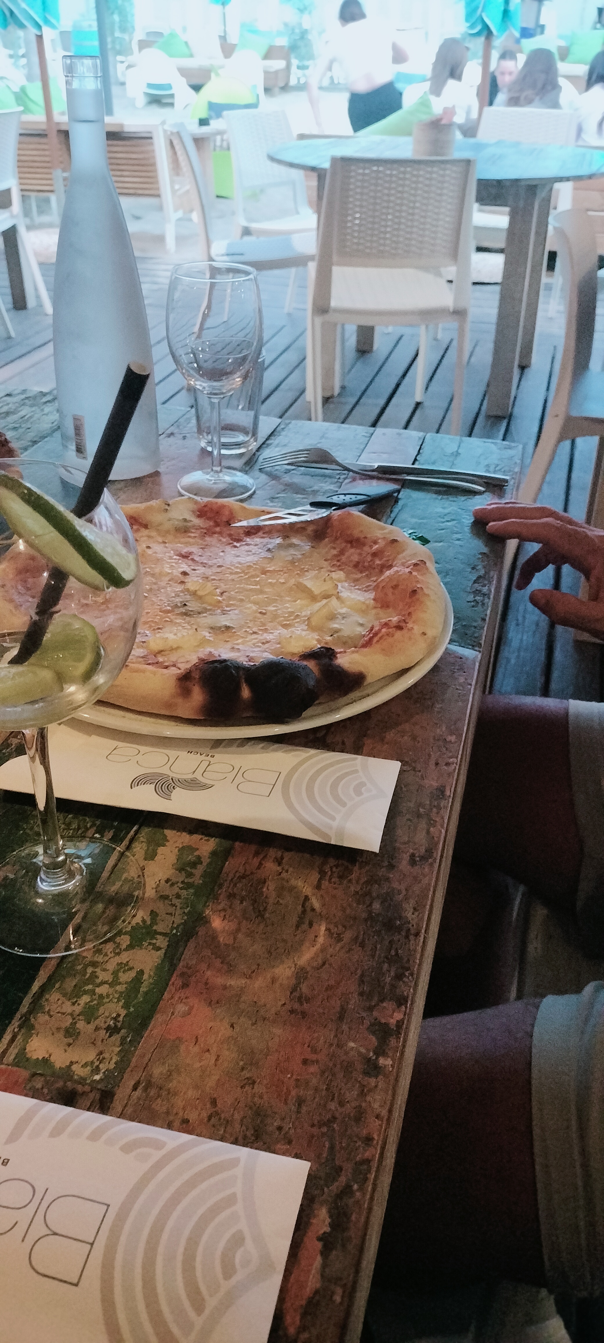 De passage au Bianca Beach lors de nos précédentes vacances, nous avions déjà testé le côté bar avec des cocktails vraiment bons pour un prix plutôt correct. Nous avons décidé d’y retourner cette année pour boire des verres mais nous avons décidé de tester la partie restaurant aussi. Rien à redire concernant nos plats (nous avons prit des pizzas qui étaient vraiment bonnes) mais nous vous conseillons de ne pas prendre les crêpes en dessert (elles n’étaient vraiment pas bonnes avec un arrière goût bizarre et pourtant nous ne sommes pas difficiles). Un service plutôt rapide et efficace mais en ce qui concerne les serveurs nous avons rencontré des personnes adorables et …. des personnes exécrables…. Un magicien est venu à notre table pour nous faire quelques tours ce qui était plutôt cool ☺️ Outre cela, c’est un chouette lieu sur la plage pour passer une bonne soirée. 🍹