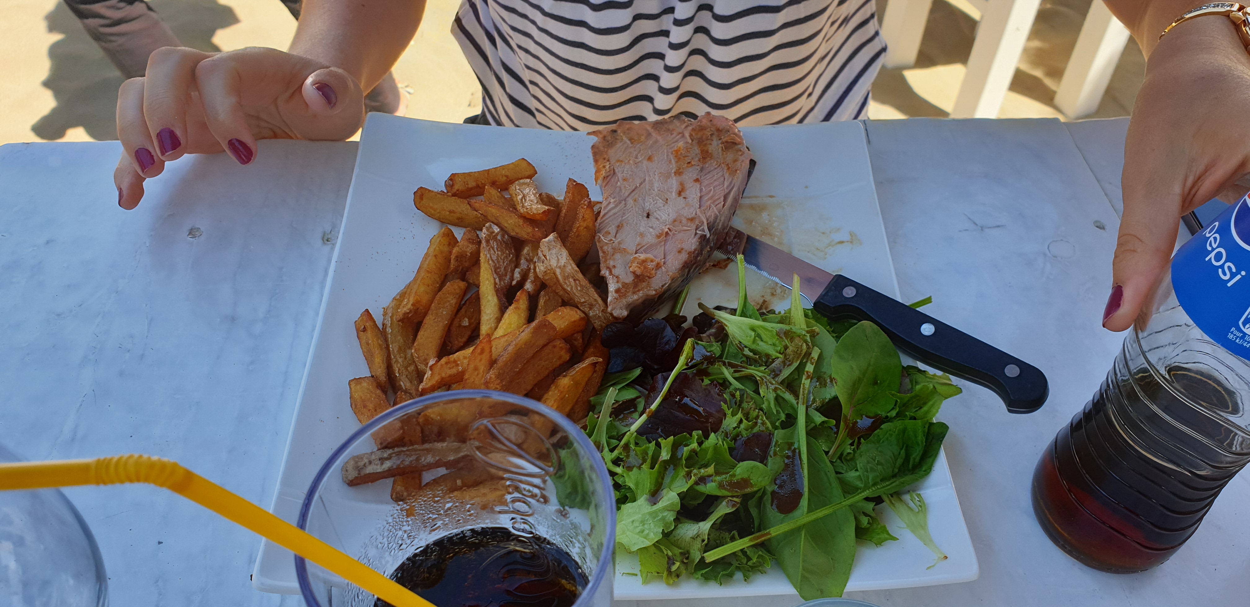 Repas médiocre et cher, à 5 nous avons tout laissé mais cela n à perturbé personne!!! Hygiène très moyenne. Plage avec transats en plastique et collés les uns aux autres, eau payante obligatoire à 6,50€ la bouteille…une honte! Aucunes étoiles pour cette plage et ce restaurant. Jamais vu ça!!!