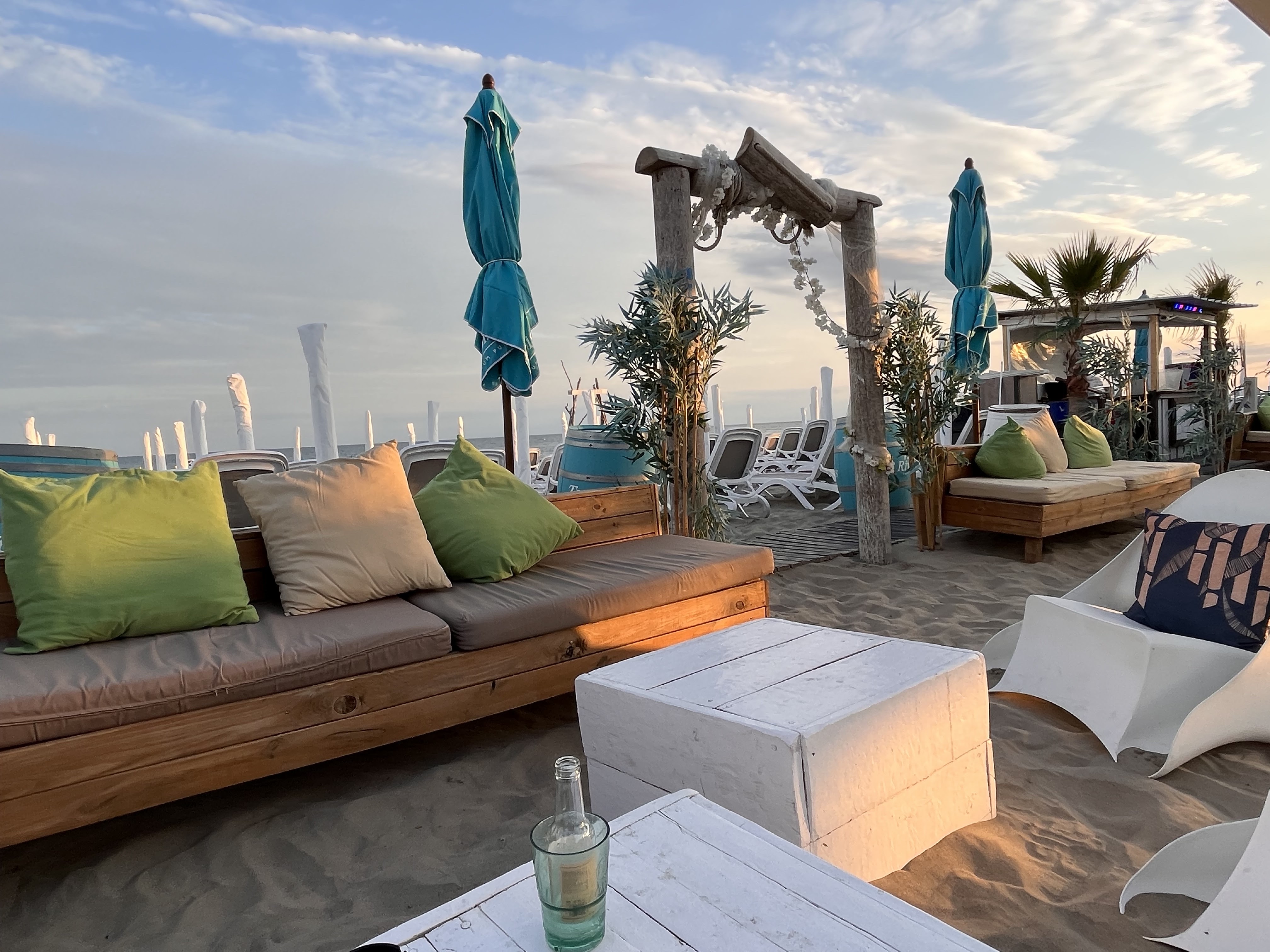 Plage privée au Cap d'Agde. Sympa pour profiter de la plage la journée sur un transat et le soir pour dîner ou boire un verre. Musique, Dj en live. Espace de danse en sable au milieu de la paillote. Parfait pour une sortie l'été décontractée. Vue imprenable sur le Fort de Brescou en prime.