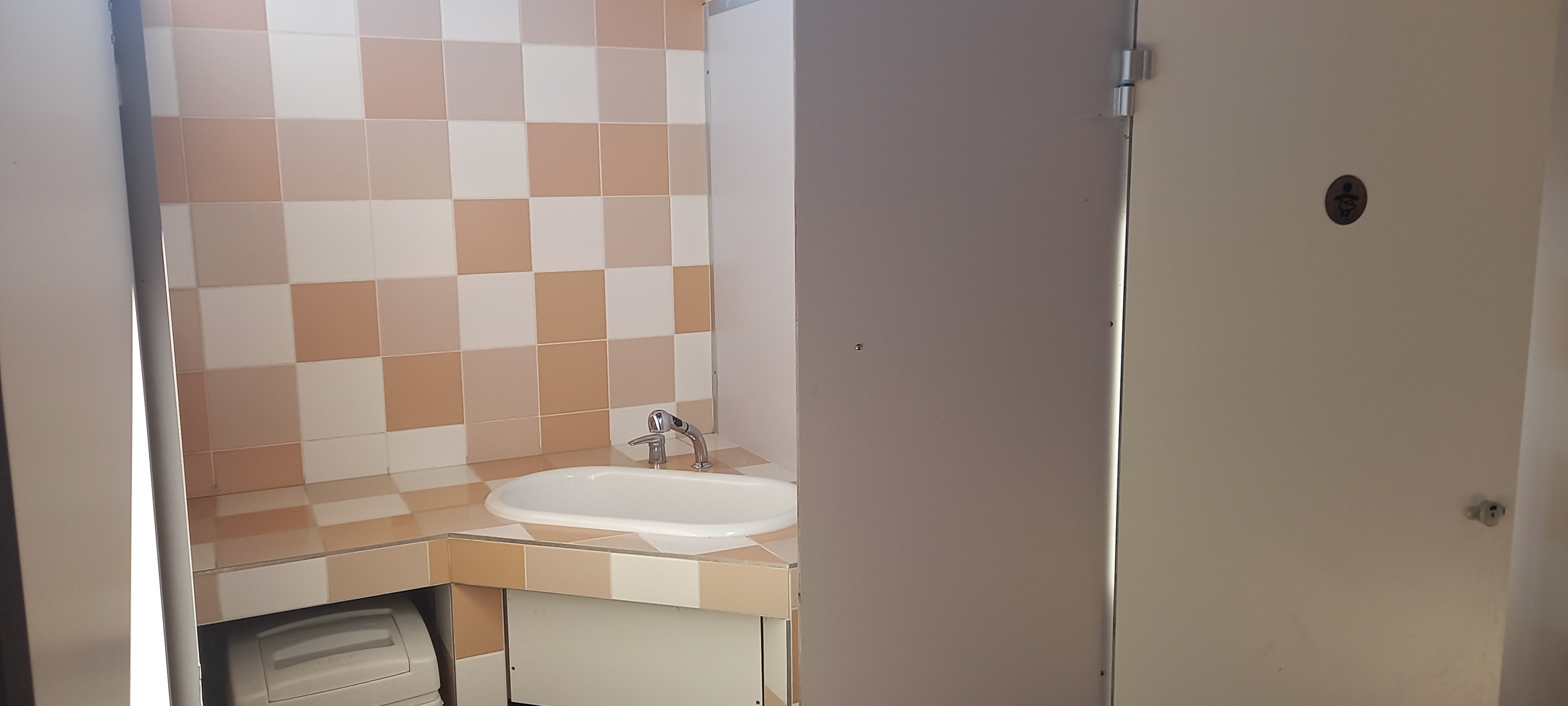 Super camping, belle piscine chauffée. De terribles robinets d'eau à bouton-poussoir font du remplissage d'un récipient à rouleau un processus long et fastidieux.