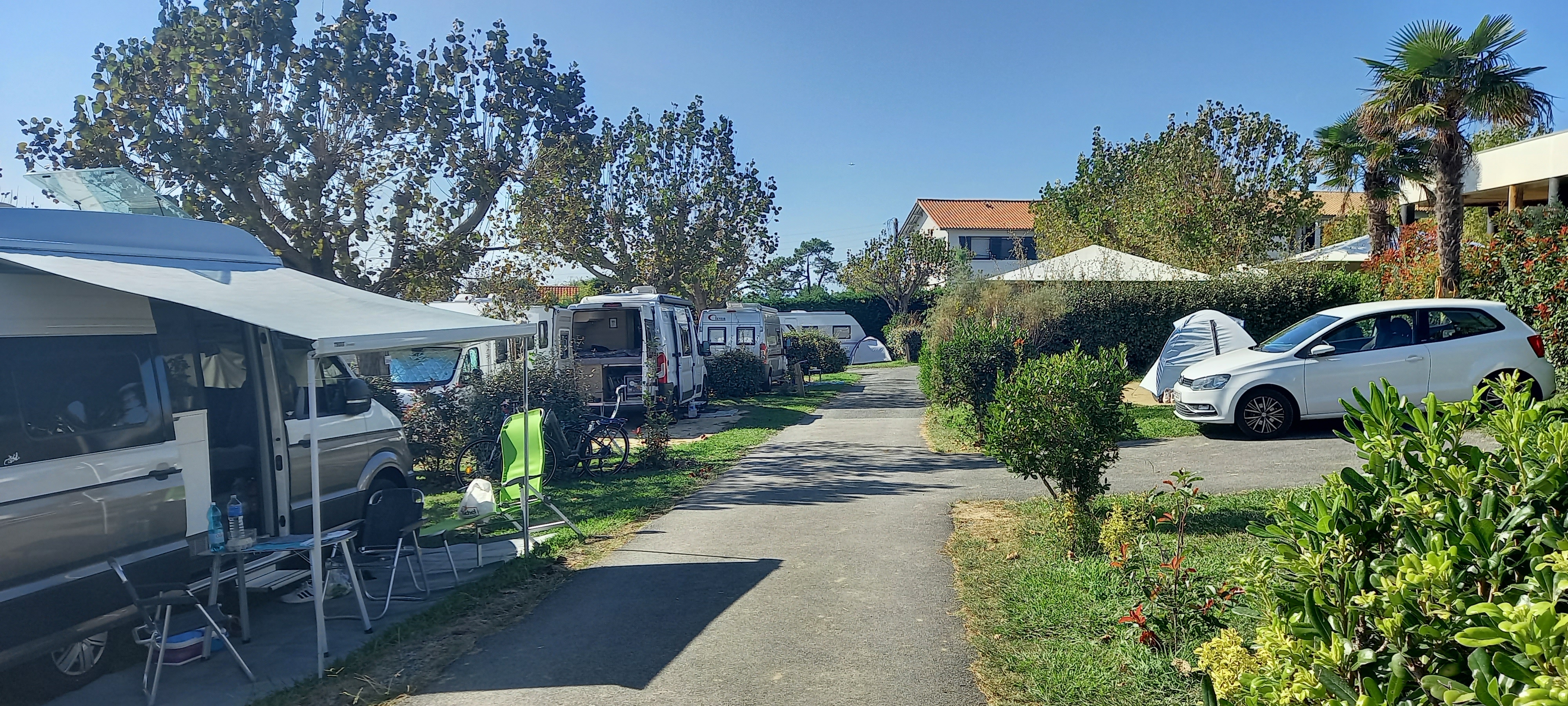 Camping familial. Emplacements longs, peu larges, moyennement ombragés, contigus. La plage est à 10 minutes à pied, le centre ville est accessible en bus (bus gratuit l'été). Prévoir de faire les courses avant l'arrivée au camping car l'épicerie est très chère. L'accueil est très agréable, que ce soit au camping, à l'épicerie, au café du camping. Camping calme (agent de surveillance toute la nuit)