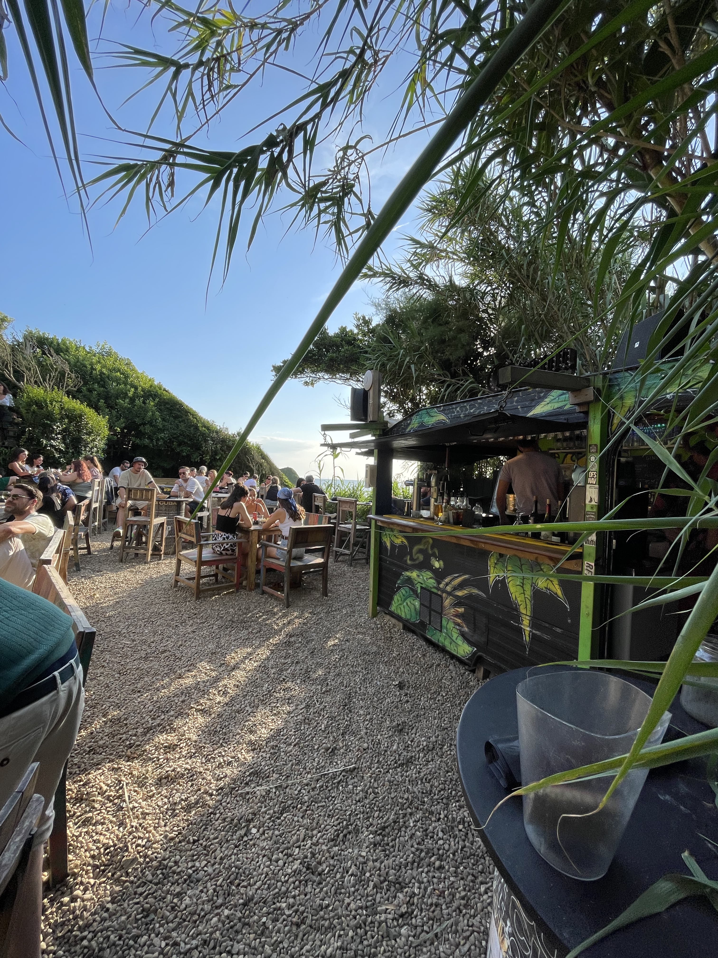 Le bar est situé à fleur de falaise, avec vue sur l'océan... c'est pas sans rappeler Uluwatu et ça fait plaisir. Néanmoins erreur sur la commande avec un plat qui arrive 20min après tout le monde, ça le fait pas et encore moins quand on voit le même plat servi en priorité à d'autre table. Mais bon c'est la haute saison et l'erreur est humaine. Les plats et apéros sont bons, ça semble fait maison dans la mesure du possible, mais l'atout principal reste pour moi l'emplacement qui est très plaisant!