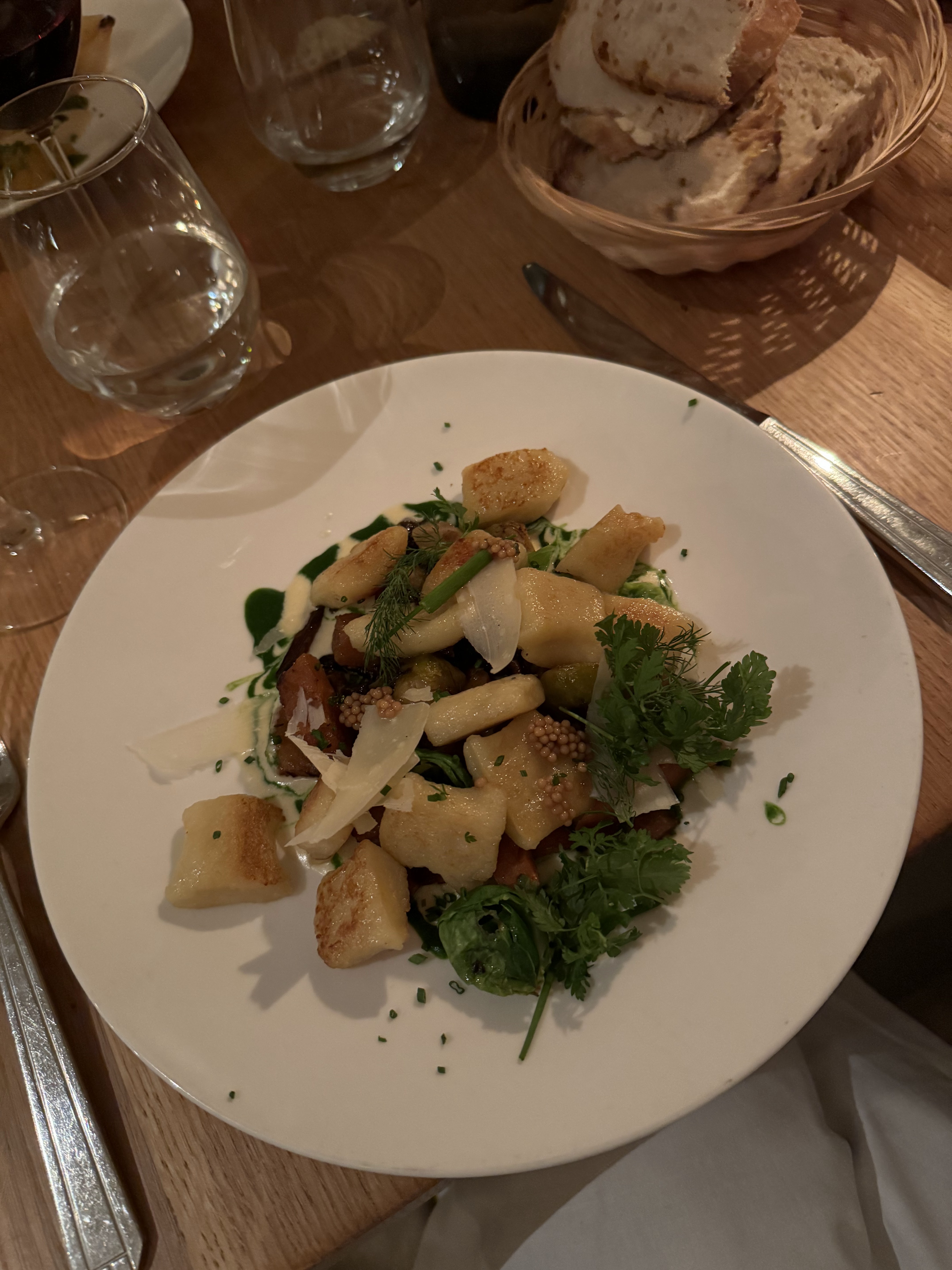 Une cuisine et des vins délicieux d'un excellent rapport qualité-prix, dans un cadre magnifique avec un service charmant. Nous y sommes allés un vendredi soir et bien que ce soit clairement un endroit plutôt cool pour sortir, ils ont été très accommodants avec notre tout-petit qui a adoré son menu pour enfants - le plus chic que nous ayons jamais vu - essentiellement une version mini de deux des plats principaux pour adultes. cours pour une bonne affaire 16 EUR (le tarif en vigueur partout ailleurs semble être de 12 EUR mais celui-ci était de loin supérieur). Je le recommande vivement.