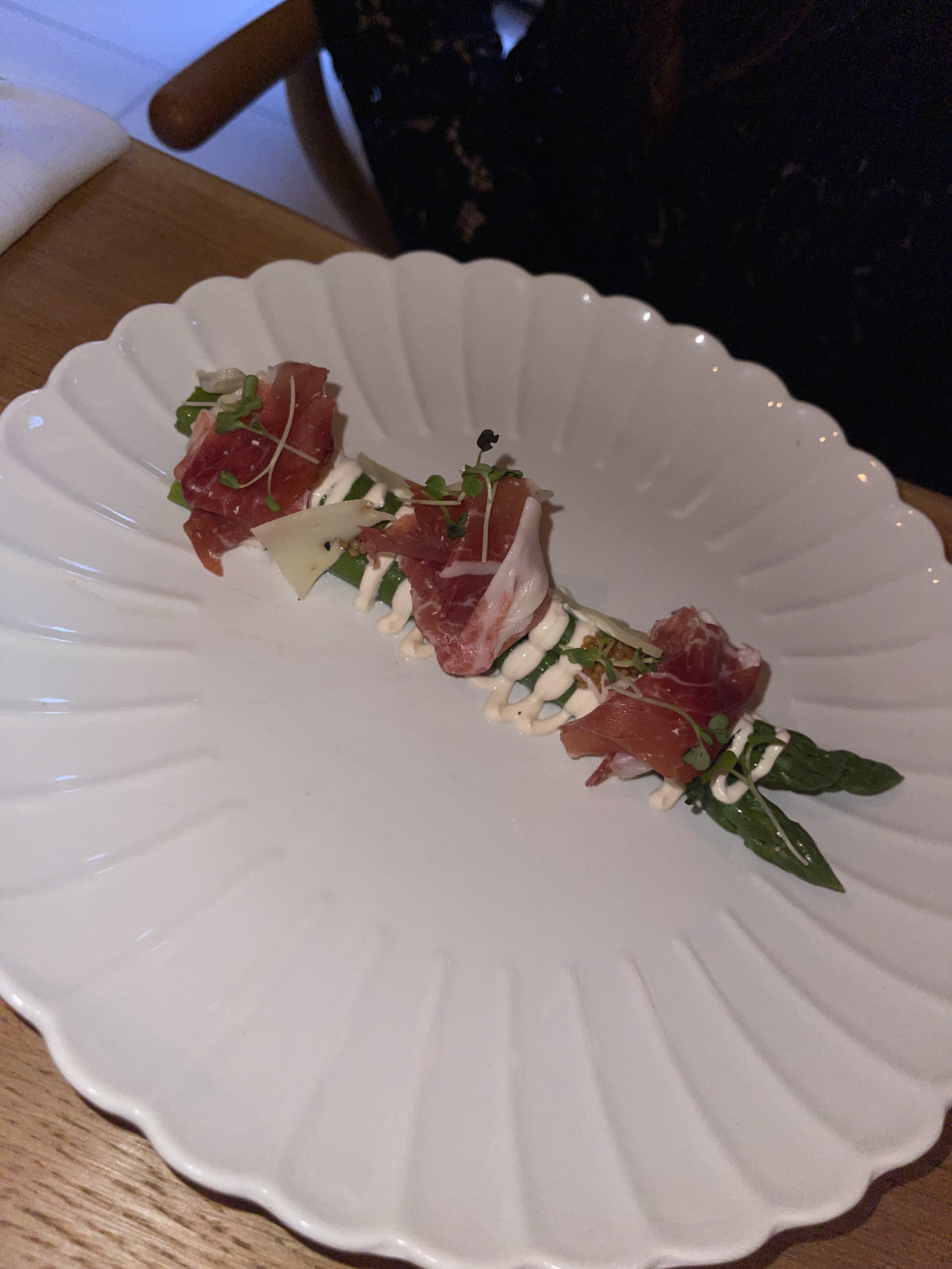 C'est le nouveau secret le mieux gardé d'Avignon. Commencé avec un cocktail suggéré, English Fizz, frappé, avec l'excellent negroni de mon partenaire. Nous venions juste de finir de visiter le Palais des Papes et avons été accueillis très sincèrement par le portier initial et le maître d'hôtel. Le repas de trois plats était excellent en termes de qualité et de présentation. À titre d'exemple, mon partenaire avait des asperges, du pecorino et du jambon, avec une sauce délicieuse, que j'ai essayé de voler. J'ai apprécié le thon qui était un bon début pour une belle soirée. Nous avons dégusté une bouteille de Sancere. Les plats étaient également parfaits en termes de goût et de qualité de présentation. La nourriture est équilibrée avec un service chaleureux et authentique. Cela n'a pas été beaucoup mieux que tout notre mois en France. Pourtant, il y a bien plus dans ce magnifique lieu que la gastronomie, car vous disposez également d'un bar à vin délicieusement fermé par des rideaux et d'un bar à cocktails bien animé avec une musique fabuleuse organisée par leur charmant gérant de bar à vin... la musique et les cocktails se mélangent parfaitement. ! Allez-y avant que la file d'attente ne passe au coin de la rue ! La chaleur était la bienvenue et nous reviendrons dès que possible !