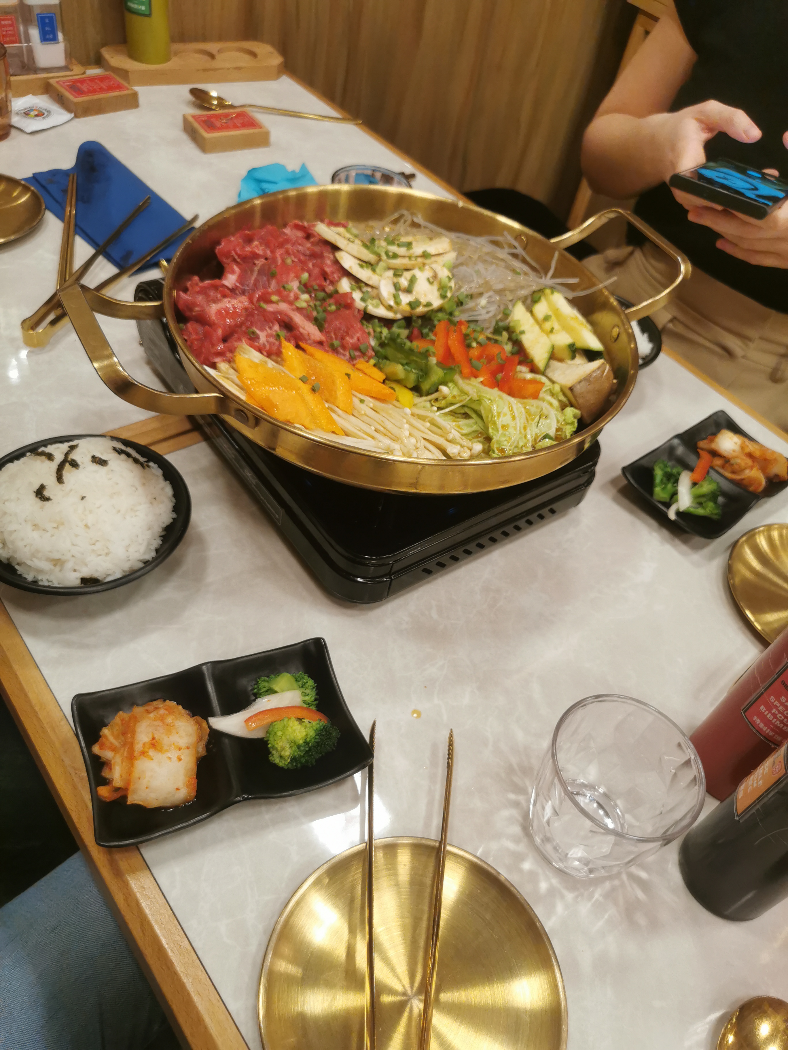 Service un peu long, et manque de saveur dans le bibim bap au bœuf la viande est hachée n’a pas de goût et n’est pas de qualité. La fondue à partager pour deux est conséquente en quantité, manque de goût également. Le poulet frit était bon. Prix raisonnable pour la qualité moyenne.