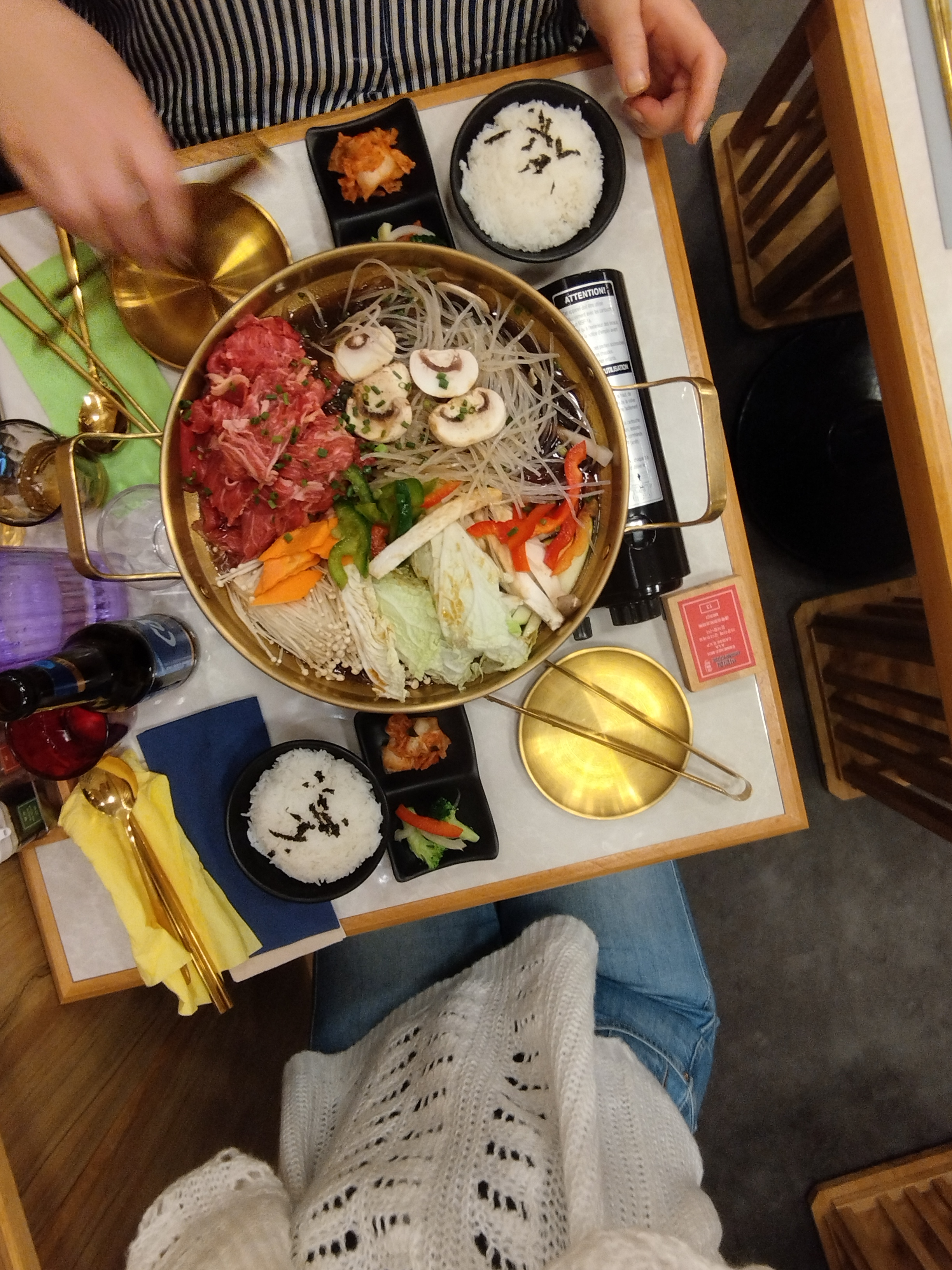 Nous avons pris une fondue coréenne au bœuf pour 2, des thés coréens et des mochis. Très satisfaites, service rapide, serveuses aimables, portions généreuses et une décoration très chaleureuse. Nous avons très bien manger, nous reviendrons sans hésiter !
