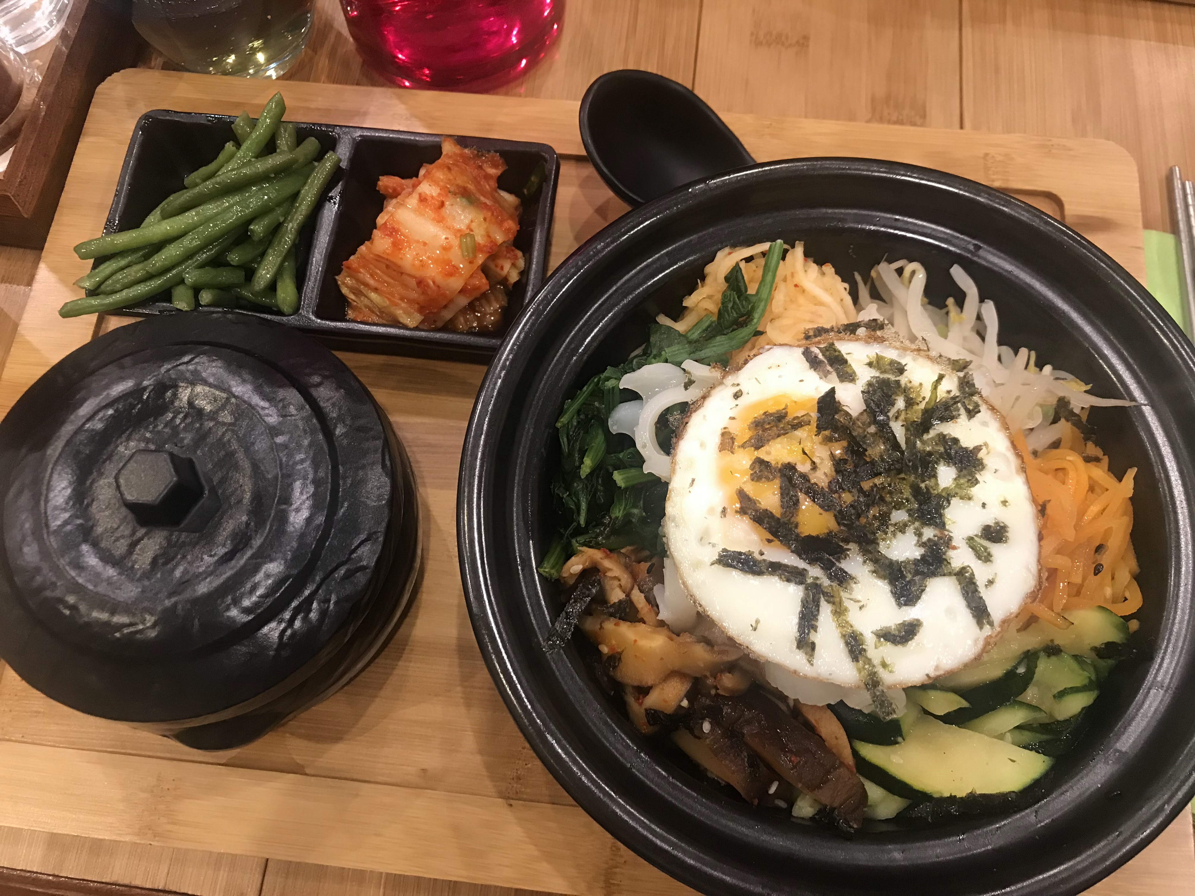 Vous serez déçu si vous chercher un repas coréen traditionnel, le bimbimpap est bon mais trop chère par rapport au fait que la quantité de riz qui est énorme par rapport au légume, et viande en peu de quantité, et les accompagnements il y’en a que 2 et pas de kimchi, cela vaudrait à peine 10€ pas plus par rapport à se que j’ai mangé. Mais les ingrédients sont de bonnes qualités et le plat assez bon.