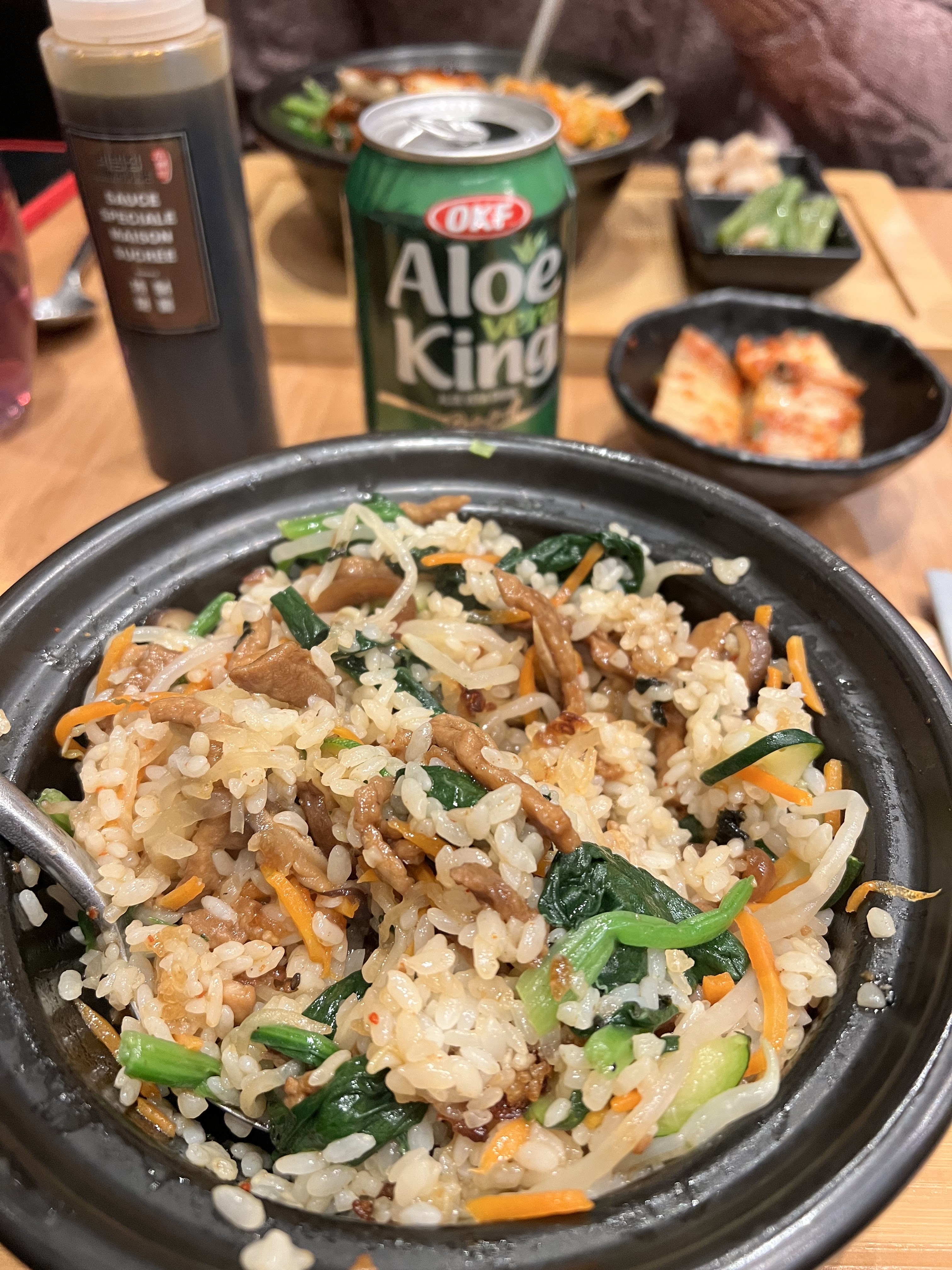 Bibimbap bon, attention le riz en fin de marmite continu à cuire et est croustillant,mais personnellement ce n'est pas un problème. Service rapide je retire une étoile pour l'organisation. Même en ayant réservé vous devez attendre s'il n'y a pas de table